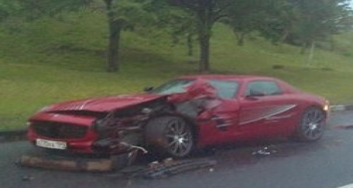 En cause ? Un accident de la circulation avec une bonne « vieille » Lada 111, laquelle a également bien souffert du choc. Précisons que cette unité en question de la SLS AMG était utilisée comme véhicule sandwich pour des séances de photos et vidéos. On évoque aussi la présence d’un Nissan Murano à l’occasion de cet accident sans qu’on sache son implication. Au final, qu’importe, le résultat n’est pas beau à voir.