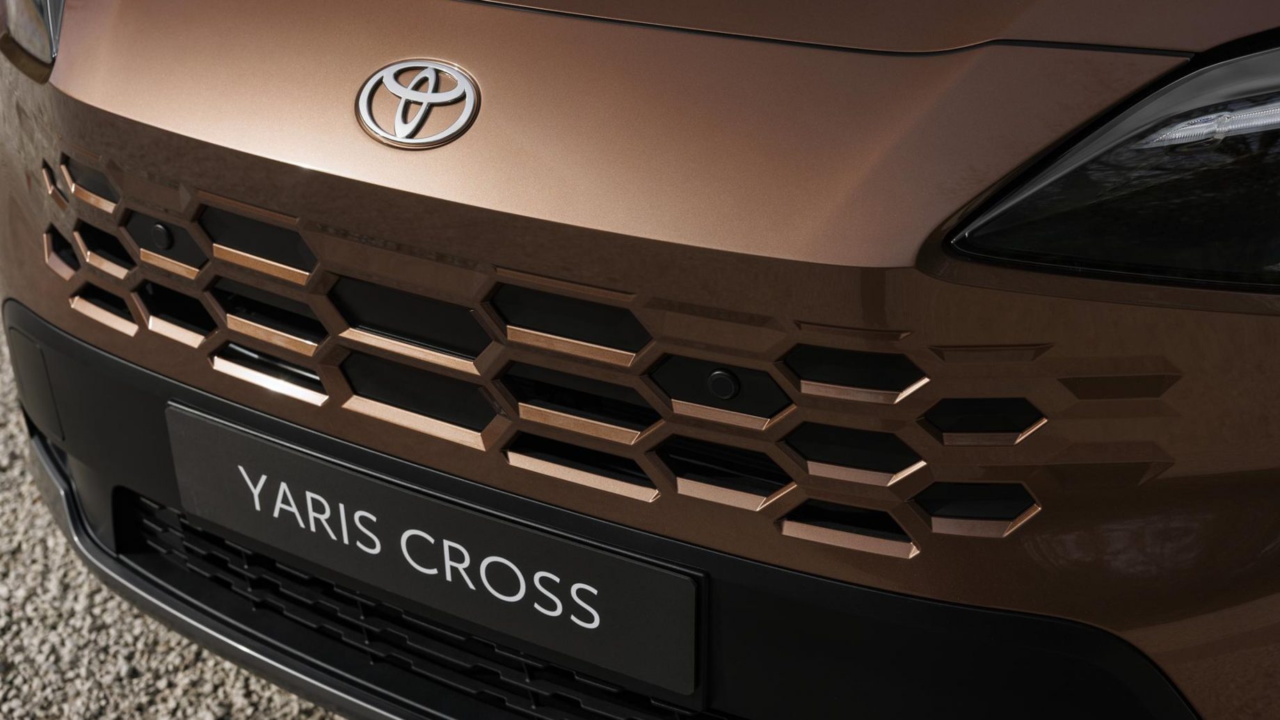 Toyota présente une version actualisée de sa Yaris Cross, fabriquée à Onnaing dans le Nord de la France. Le SUV compact adopte une nouvelle calandre avec motif en nid d’abeille, peinte dans la couleur de la carrosserie. Les optiques LED ont été redessinées et les feux de jour sont désormais de série. On peut également remarquer que le logo Toyota migre un peu plus au nord et que le bouclier a des arêtes plus marquées.