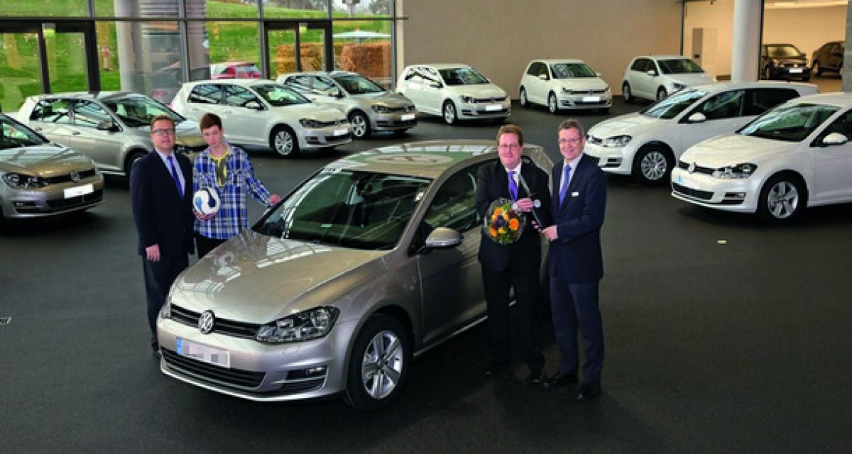 En marge du large lancement européen de la septième génération de sa tête de gondole, Volkswagen annonce que la première d’entre elles vient d’être remise à son forcément heureux client. On reste en réalité en famille puisque c’est un salarié de la marque qui a reçu son auto et les clefs.Volksgwane vient donc de livrer la première Golf VII à Ralph Köhler, un employé de la marque. Le choix de notre homme s’est porté sur une version animée par le 1,6 TDI de 105 ch et une livrée de carrosserie ton Tungsten silver Metallic.