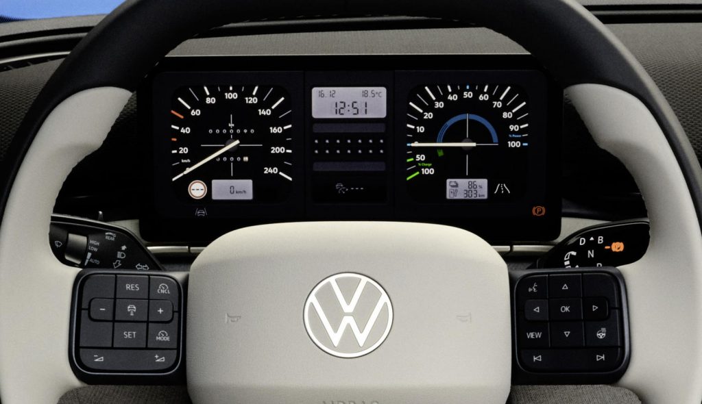 Eh bien VW introduit la possibilité d’afficher des instruments de bord à la manière des VW Golf de première génération. Tadaaaa ! Et donc ? Eh bien c’est tout. Mais bon, cela pourrait donner une petite touche nostalgie pour vendre un peu mieux cette « Polo électrique » comme voiture du peuple. L’écran des instruments fait 10,5 pouces (26 cm) de diagonale, l’écran central tactile près de 13 pouces (33 cm).