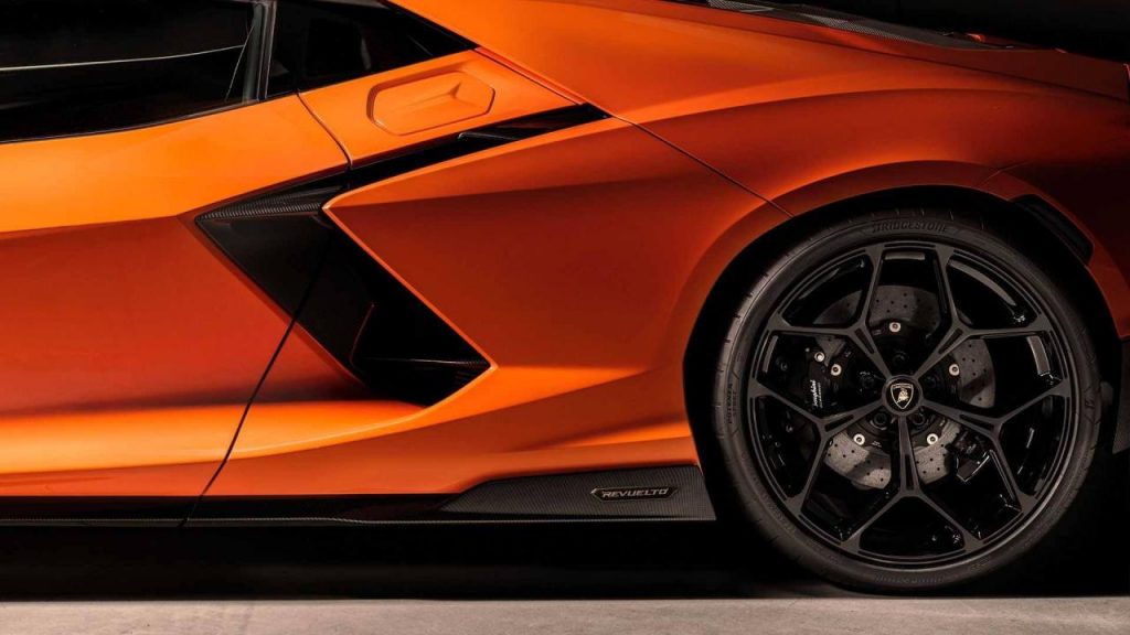 Lamborghini garde les fondamentaux avec un moteur V12 atmo de 6,5 litres, une évolution du moteur équipant l'Aventador, qui produit 825 ch et 725 Nm de couple, ce qui en fait le 12 cylindres de route le plus puissant de Lamborghini, alors que la plus puissante des Aventador sortantes, la LP780-4 Ultimae , ne produisait « que » 780 PS. Mais en plus de ce V12 record, la Revuelto comprend trois moteurs électriques : deux unités de 150 chevaux dans le nez entraînant les roues avant et un troisième moteur électrique de la même spécification logé avec la nouvelle transmission à double embrayage à huit rapports qui aide à entraîner les roues arrière.