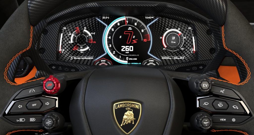 Avec tant de choses en cours, pour exploiter cela le plus efficacement possible, Lamborghini a annoncé aujourd'hui qu'elle avait développé 13 "expériences de conduite" sélectionnables et trois nouveaux modes de conduite. Les conducteurs peuvent choisir parmi les paramètres hybrides couramment trouvés de Recharge, Hybrid et Performance, tandis qu'un autre contrôle permettra la sélection des modes Città (City), Strada, Sport et Corsa.