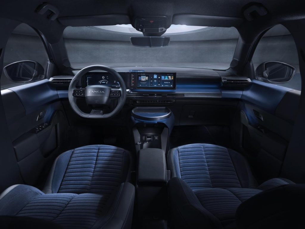 L'une des principales caractéristiques est le "tavolino" multifonctionnel Cassina, utilisé pour créer un espace accueillant façon "living room" assemblé à la main, avec un revêtement en cuir et une fonction de recharge sans fil pour smartphone. La réinterprétation de la tradition se matérialise par l’utilisation de matériaux innovants recyclés et recyclables, à l’exemple du tissu bleu de la sellerie fabriqué en matériau contemporain, ainsi que le velours au tissage nervuré utilisé pour les sièges et leurs dossiers. L'Alcantara n'est donc pas de mise. Les sièges électriques, massants et chauffants apportent aussi une touche de premium "bien-être" . Cette nouvelle Ypsilon propose une planche de bord avec deux écrans de 10.25 pouces (26 cm) disposés en enfilade mais sans affichage continu, il y en a un derrière le volant et un au centre de la planche de bord pour le système d'infotainment.