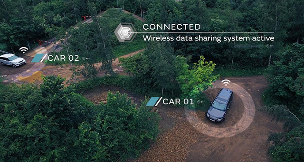 La démonstration effectuée par Land Rover comportait également le déploiement de fonctions de roulage en convoi, en tout terrain toujours. Les véhicules échangent entre eux des informations relatives à l’adhérence, au débattement des roues…