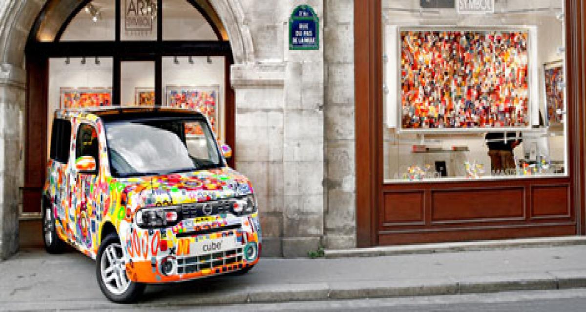 La « Art Symbol Gallery » expose un Nissan cube entièrement relooké par l’artiste Micha Tauber lors de son exposition intitulée Itinéraires privés.