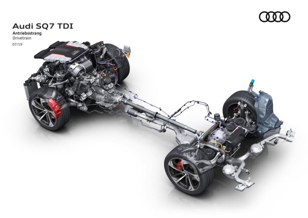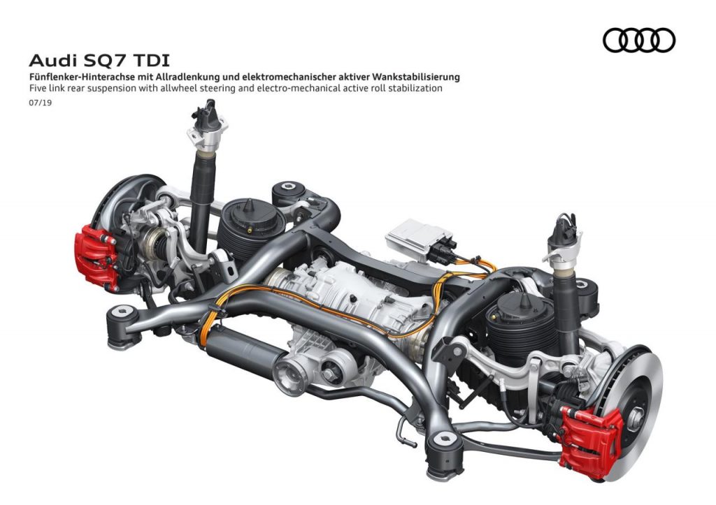 Barre stabilisatrice, 4 roues directrices, différentiel sport, boîte à vitesses Tiptronic à 8 rapports, transmission quattro permanente. La panoplie technique ne change pas pour aider ce gros SUV à être un minimum agile. Officiellement, la consommation mixte s’établit entre 7,6 et 7,4 litres aux 100 km soit des émissions de CO2 de 200 à 194 g/km.