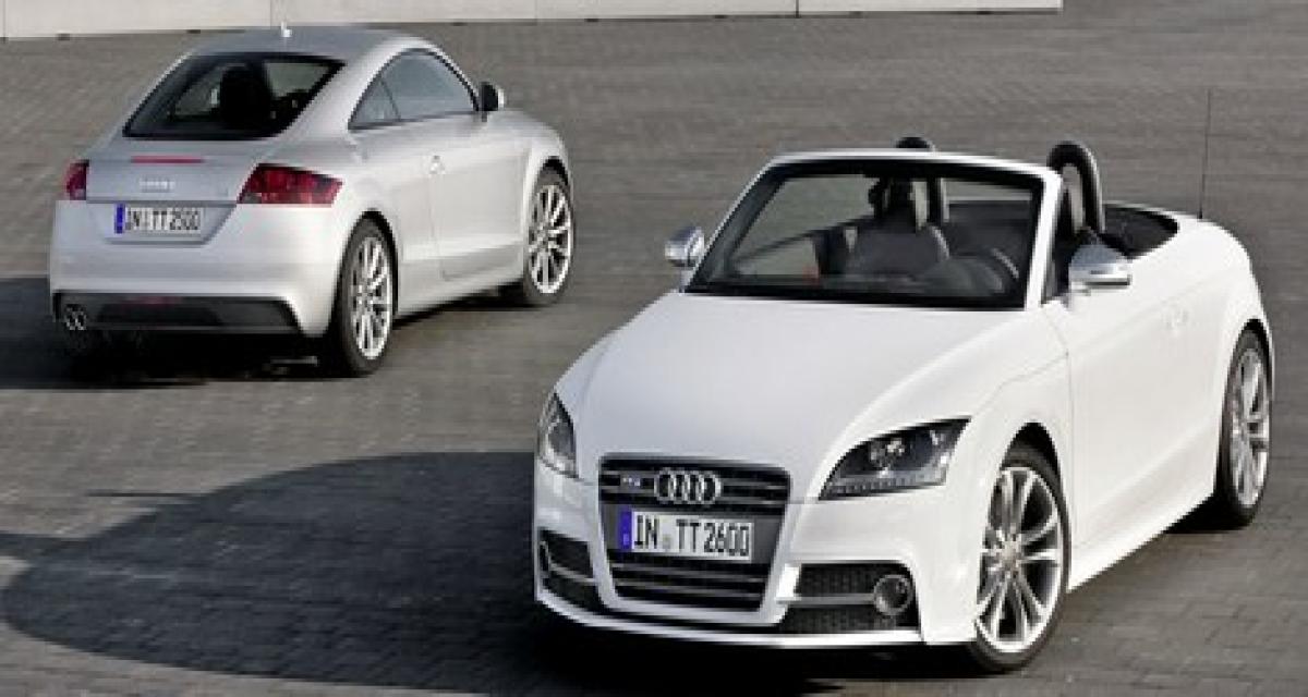 Question motorisation l’arrivée du 2.0 TFSI de 211 ch, remplace l’ancien délivrant 200 ch, en boîte manuelle ou S-Tronic et Quattro ou pas. Les 1.8 TFSI de 160 ch et 2.0 TDI de 170 ch restent au programme mais revendiquent des niveaux de consommation et d’émissions de CO2 en recul (pas d’infos complémentaires). Quant aux versions TTS et TT RS, rien de neuf. Audi devrait compléter lors de la présentation au salon de Leipzig.
