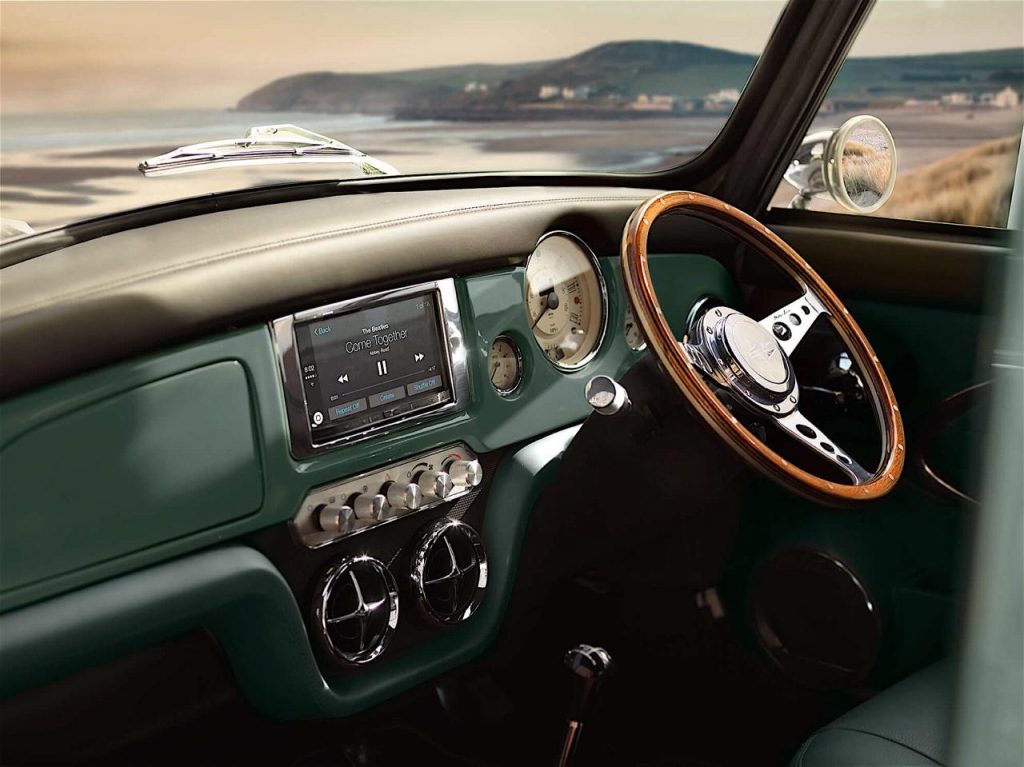 Le principe est donc ici de partir d’un véhicule existant, qui sera totalement démonté. La carrosserie est soigneusement remise à neuf et renforcée. Pour améliorer le comportement, tout en réduisant aussi les vibrations. L’habitacle est habillé de cuir de qualité, avec six teintes au choix. La planche de bord traitée en noir, ivoire, ou ton caisse est largement modifiée. Avec en particulier l’intégration d’un système hi-fi / multimédia très actuel, avec écran tactile et réplication de smartphones. Les 4 aérateurs qui semblent issus de chez Mercedes soufflent au besoin de l’air froid grâce à la climatisation. Et toutes les commandes sont remplacées par de nouvelles pièces, principalement en aluminium : réglage de sièges, commodos, commandes de chauffage… Et pour donner un petit plus de technologie, l’accès et le démarrage sont mains-libres.