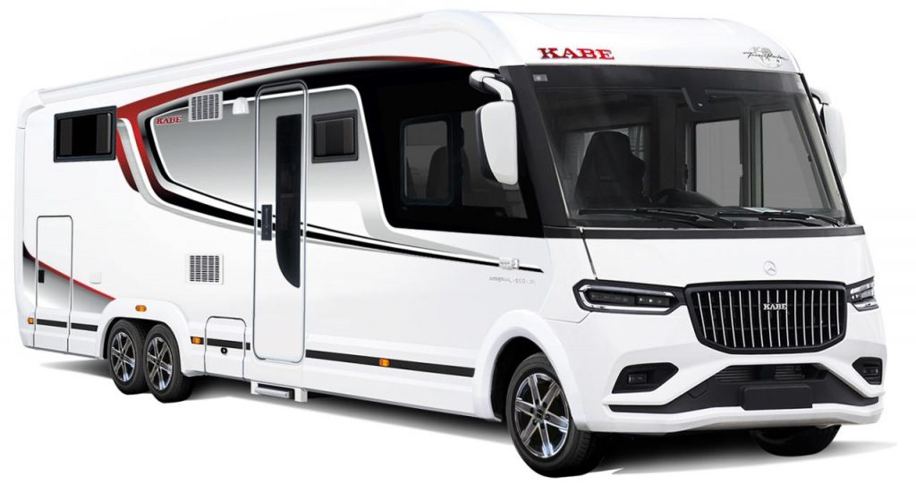 Enfin, Mercedes expose sur le salon ses partenaires. Ce sont les transformateurs du Sprinter comme Hymer, Wochner, Adria et Kabe. Pour les curieux, chaque préparateur amène un véhicule. On trouve le Summiteer 6.0 de Wochner, les camping-cars semi-intégrés ML-T 580 de Hymer et Coral Supreme MB 650 SL d'Adria. La bête à concours, c'est sans doute le Travel Master Imperial 860 LQB de Kabe : c'est un véhicule trois essieux et on peine à voir le Sprinter sous ses traits.