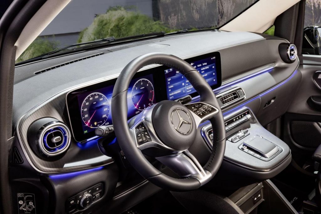 Outre un style calqué sur les autres Mercedes, le Marco Polo utilise des phares adaptatifs MULTIBEAM LED, et des LED à l'arrière. A l'intérieur, on trouve deux grands écrans larges de 12,3 pouces. Le MBUX est intégré. Certes cela reste un ou plusieurs crans en deçà des berlines, mais on est loin des utilitaires vaguement aménagés qui existaient à une époque. Pour le confort, tout est aménagé comme un camping-car luxueux. De plus, le Classe V Marco Polo a une suspension Airmatic capable de niveler un sol légèrement accidenté.