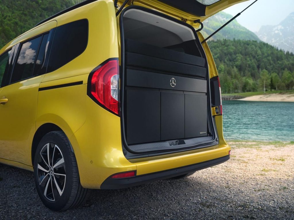 A Düsseldorf, Mercedes amène aussi le Classe T avec module Marco Polo. Le Classe T, c'est le Renault Kangoo pour particuliers. Ici, il est aménagé en "micro-camping-car" selon Mercedes. Le module se glisse à l'arrière et se fixe aux oeillets d'arrimage. Il contient un lit standard 2 places, et une kitchenette en option (évier et cuisinière à gaz et même un mini-réfrigérateur, le tout en option). Différents éléments peuvent compléter la panoplie pour partir en camping à deux avec un assez bon confort.