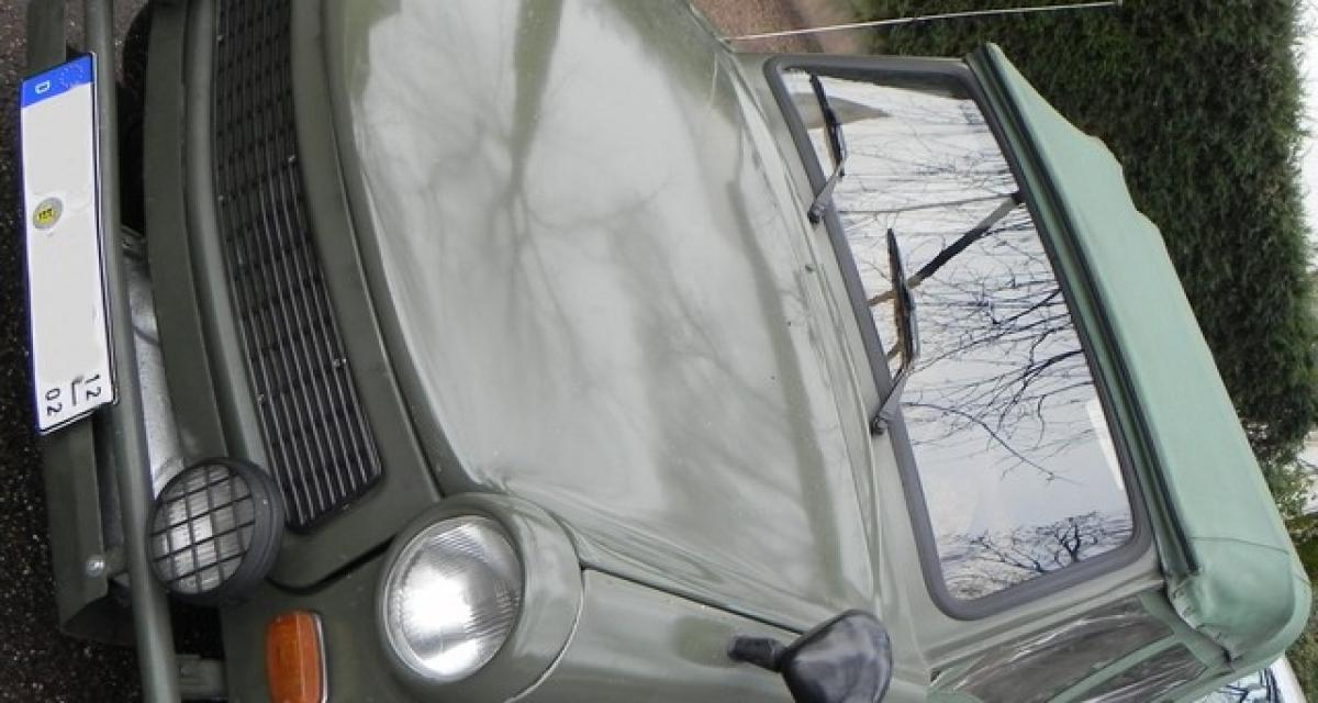 Avec cette bouille inimitable, aucun doute : c’est une Trabant 601. Mais pourquoi est-elle kaki, avec une bâche en guise de toit et de portes ? Ne me dites pas que la « Trabi » a servi sous les drapeaux ? Ouaip, c’est belle et bien une Trabant militaire. C’est dire à quel point l’armée de la RDA était fauchée…