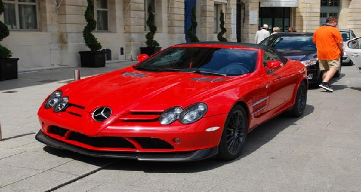 Je peux vous dire aussi que ce rouge lui va à merveille. Ce n’est pourtant pas la première SLR que je vois mais la quatrième. Toutes les autres étaient d’un « banal » gris métallisé, celle-ci est peut-être un peut trop voyante certes, d’un goût discutable, mais il faut savoir qu’une SLR est toujours ultra visible et ce quelle que soit la couleur de sa carrosserie, allez savoir pourquoi… Ce qui fait que ce rouge ne change rien au final, tout comme les jantes noires qui sont toutes les quatres des rappels aux différentes structures de même teinte. Bref, en tout point (ou presque) une superbe voiture (qui a failli passer en photo sur le blog rubrique concours photos, malheureusement je n’ai pas eu le temps d’envoyer la photo).