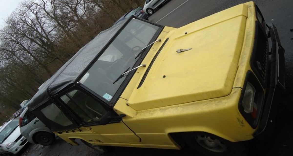 On est donc face à une 6 Rodéo (type 2B) produite après 1976 (losange Renault), mais avant 1979 (pas de phares de R14.) Quoi qu’en dise les pubs de l’époque, ce n’est pas un vrai tout-terrain (même si certains véhicules ont été équipés d’une transmission 4×4 Sinpar.) Ne serait-ce qu’à cause d’une garde-au-sol trop réduite. En revanche, elle peut se prendre pour un pick-up ou pour un cabriolet. La Mehari a pour elle son apparition dans la série Les gendarmes… et la passion que porte les Citroënistes aux anciennes productions du chevrons. A contrario, les fans de Rodéo ne sont guère nombreux. D’autant plus que le lignes, taillées à la hachette et intégrant maladroitement des composants Renault, ont vieilli. Au moins, la carrosserie ne rouille pas et les pièces détachées (hors carrosserie) sont facile à trouver.