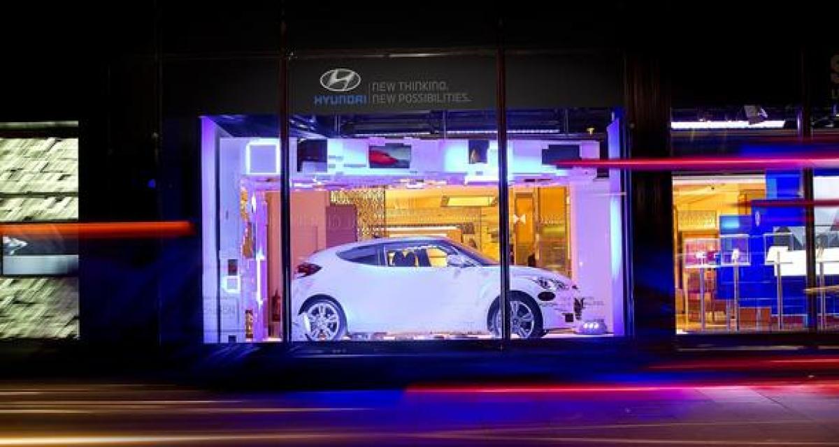 La marque sud-coréenne vient d’offrir une jolie vitrine médiatique et publique de l’autre côté de la Manche après avoir signé un accord pour y exposer quelques semaines durant son petit coupé asymétrique. Si d’ordinaire Harrods n’a pas besoin de publicité pour accueillir plusieurs milliers de visiteurs au quotidien, en cette pleine période de Jeux Olympiques à Londres nul doute que l’affluence devrait encore être bien supérieure !Depuis quelques heures et jusqu’au 25 août prochain, le coupé Hyundai Veloster s’affiche en vitrine du magasin Harrods du côté de Brampton Road. C’est en étant partenaire de l’exposition « La Corée aime Londres, alias « Korea Loves London – Innovation and technology 2012 » dans le texte originel, que Hyundai a réussi à décrocher cette présence.