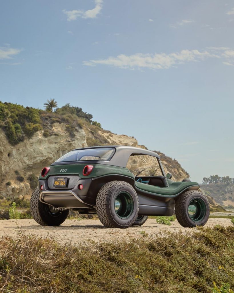 Seulement deux ans après, les nouveaux propriétaires du blason présentent le Meyers Manx 2.0, une sorte de « restmod » du buggy qui devient électrique. Pour l’instant, les informations techniques sont encore limitées. Est-il en fibre de verre, comme l’original ? En tous cas, l’esprit du design d’origine intemporel a été préservé avec ses phares ronds, ses galbes, ses gros passages de roues mais un intérieur qui sera moins rustique.