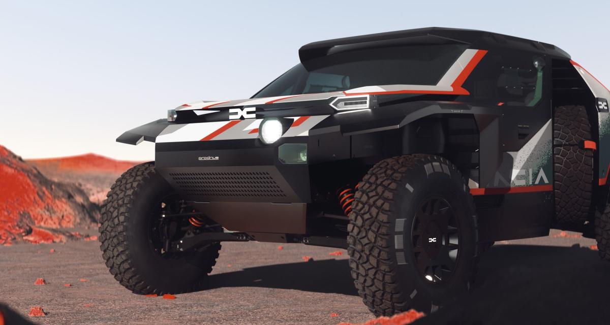 Pour le moment ce sont des visuels 3D mais le prototype devrait être au salon Rétromobile avec Sébastien Loeb. Dacia (et Renault) ont conçu un véhicule qui s'inspire du concept Manifesto de Dacia. Il ressemble, dans son esprit global aux véhicules du Dakar, à savoir un avant très très fin qui semble posé sur des ailes très échancrées. Cela dévoile un avant typé buggy mais il s'agit bien d'un 4×4. Pour le reste, les designers Dacia ont pu mettre les effets de style de la marque un peu partout.