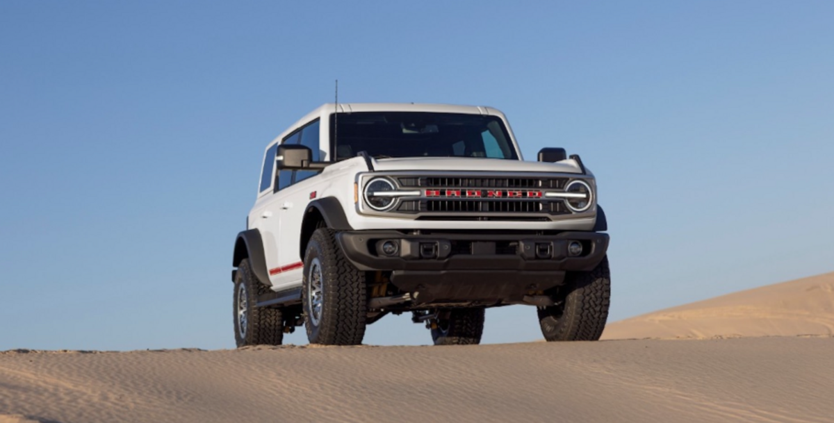 Uniquement disponible avec le pack Sasquatch, cette édition est équipée pour le hors-piste avec un système 4×4 avancé, des différentiels avant et arrière à verrouillage électronique, une suspension rehaussée et des pneus Goodyear de 35 pouces montés sur des jantes Gravity Gray de 17 pouces. Un capuchon central rouge vermillon, orné du logo Bucking Bronco et de l’inscription « 1966 », vient compléter l’hommage visuel.