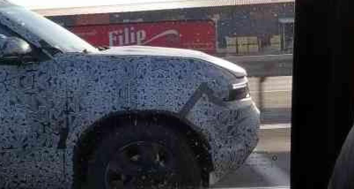 Sur les photos publiées sur le forum de Cochespias, on peut découvrir le profil avant de ce futur Duster. Le capot est anguleux et horizontal majoritairement. Mais, on voit surtout la bande de feux avant sur laquelle plonge le capot en bout de course.