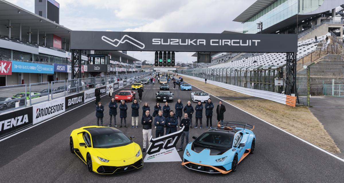 Quelques jours après la présentation d’une Huracan revue et corrigée en mode cyberpunk par l’artiste Ikeuchi, la marque a organisé son 60e anniversaire Lamborghini Day sur le circuit de Suzuka le 23 février. Plus de 280 Lamborghini, actuelles, classiques et modèles en édition limitée, se sont réunies sur le circuit de Suzuka. L'événement a débuté par un défilé autour de la piste où plus de 250 Lamborghini ont reconstitué l'histoire de l'entreprise, de la Miura à la Countach LPI 800-4. Ce défilé a été reconnu par Guinness World Records comme le "plus grand défilé de voitures Lamborghini", un record du plus grand nombre de Lamborghini conduites en même temps (251 voitures). L’an passé, le Lamborghini Day de Suzuka avait rassemblé 180 véhicules.