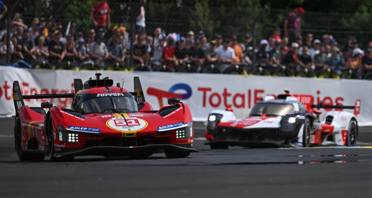 En tête, le duel est à son paroxysme entre Ferrari et Toyota. La Ferrari n°51 et la Toyota rescapée n°8 ne sa lâchent, pas, ayant effectué leurs 5 derniers arrêts aux stands en même temps ! C’est à la faveur d’un changement de capot sur la Toyota, et donc d’un arrêt plus long, que la Ferrari est passée devant. Seulement une vingtaine de secondes séparent les deux bolides ! La 499P semble plus rapide intrinsèquement, mais rien n'est joué.