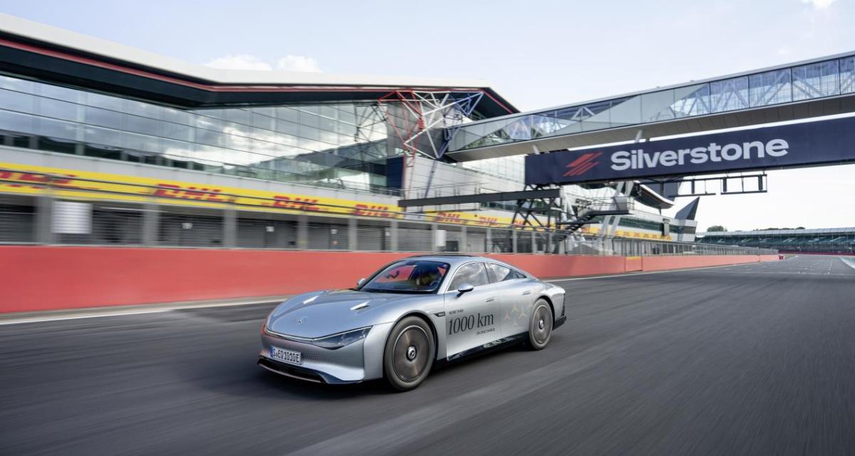 Le véhicule ultra profilé de style streamline EQXX a placé la barre encore plus haute, avec un road trip de 1 202 kilomètres de Stuttgart à Silverstone au Royaume-Uni. Après avoir négocié une fermeture d'autoroute, le VISION EQXX a traversé la frontière française près de Strasbourg, puis a traversé le nord de la France jusqu'à Calais, où il est monté à bord de l'Eurotunnel. Poursuivant son voyage au Royaume-Uni, elle a emprunté la M25 autour de Londres puis s'est arrêtée à Brackley, au siège de Mercedes F1. Le VISION EQXX s'est ensuite rendu à Silverstone, où il a été accueilli par le pilote Mercedes de Formule E Nyck de Vries. Le Néerlandais a bouclé 11 tours du circuit, avec des pointes à 140 Km/h, utilisant la fin de charge sur la voie des stands. Tout au long du road trip, le VISION EQXX a réalisé une consommation moyenne de 8,3 kWh/100 km face à un trafic dense et des températures estivales, Sur les 14 heures et 30 minutes de conduite, la climatisation a fonctionné pendant un peu plus de huit heures, mais n'a eu qu'un impact négatif minime sur la consommation d'énergie globale.