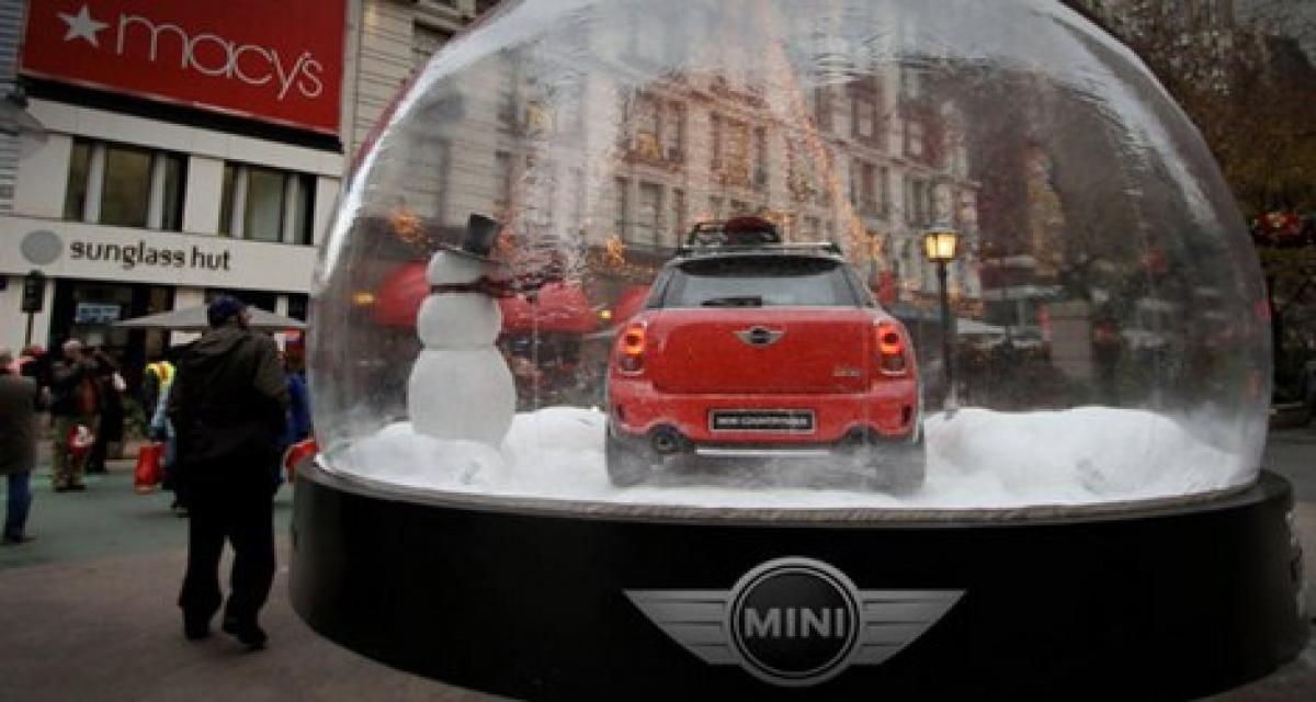 Chez Mini on ne manque pas d’idée sur le plan marketing pour mettre en avant les produits maison. C’est le cas avec la présence de cette boule à neige géante installée dans une artère passante de New York. Direction la 34e rue de la grosse pomme.
