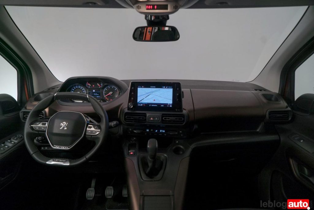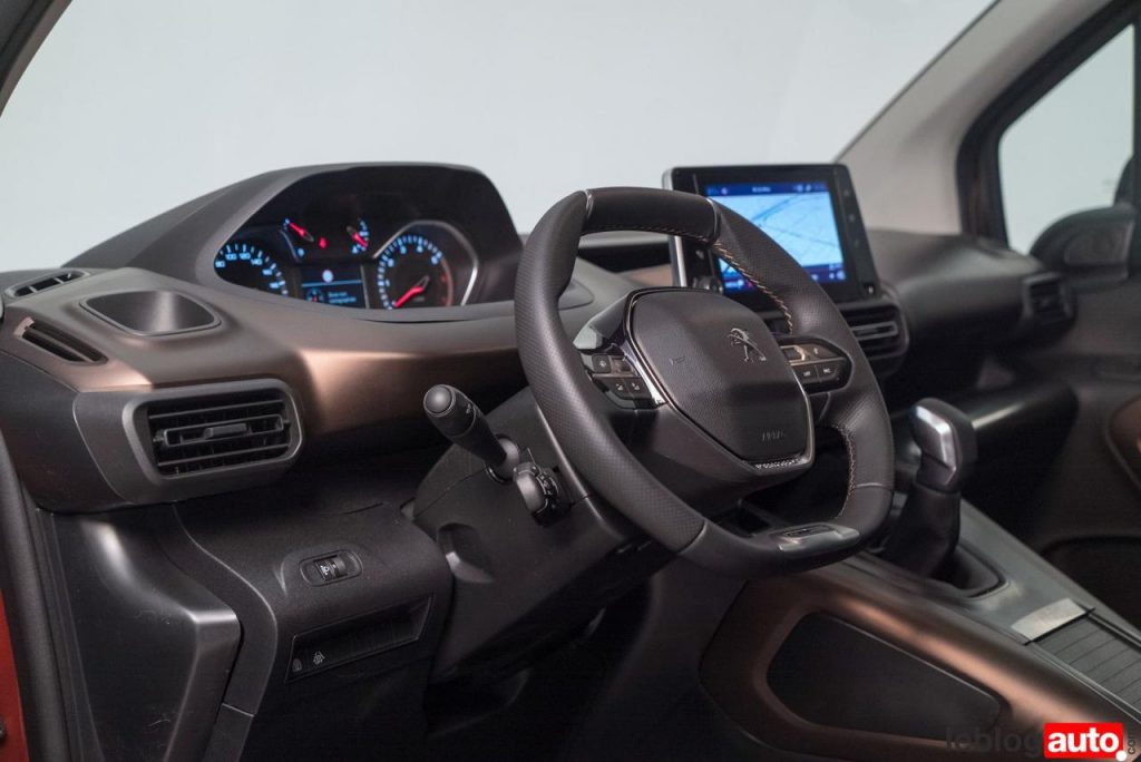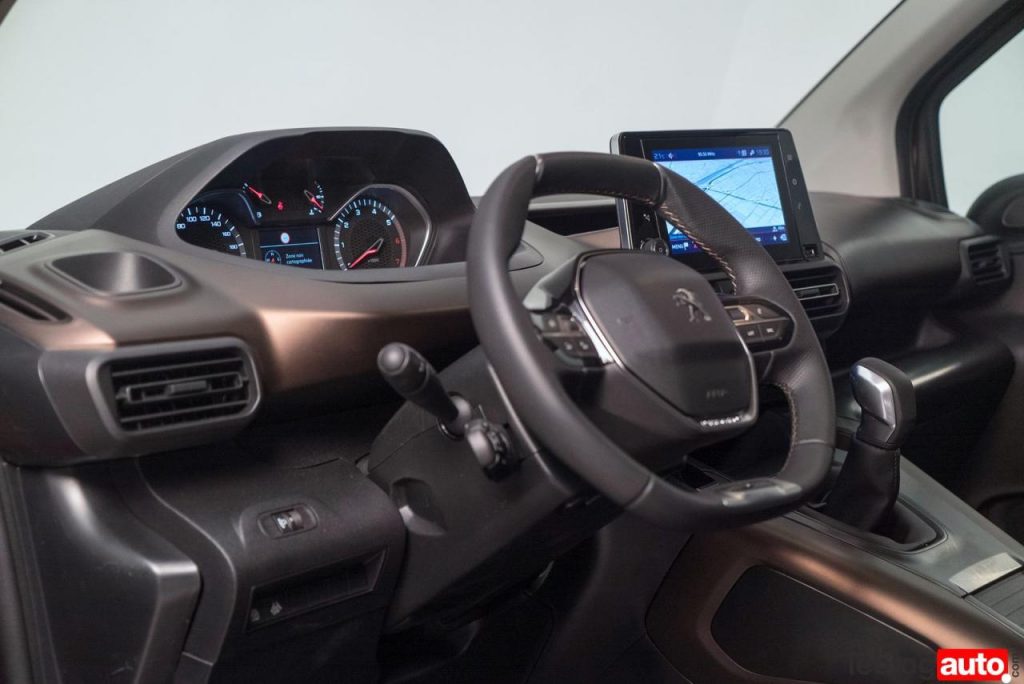 A l’intérieur, on est bien dans l’univers utilitaire civilisé. Les matériaux sont assez sonores, mais, de bonne facture. Peugeot calque ici son i-cockpit avec un volant relativement petit et des compteurs qu’il faut regarder par dessus la jante.