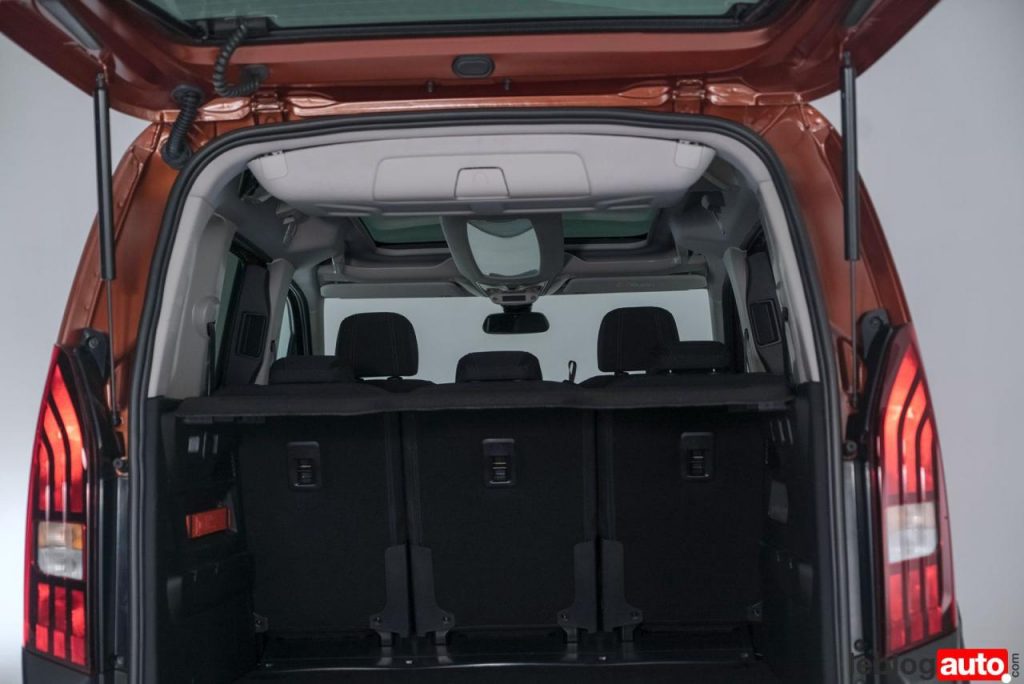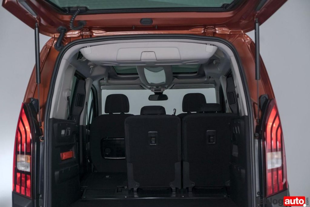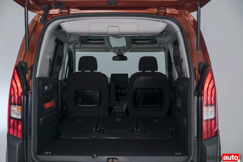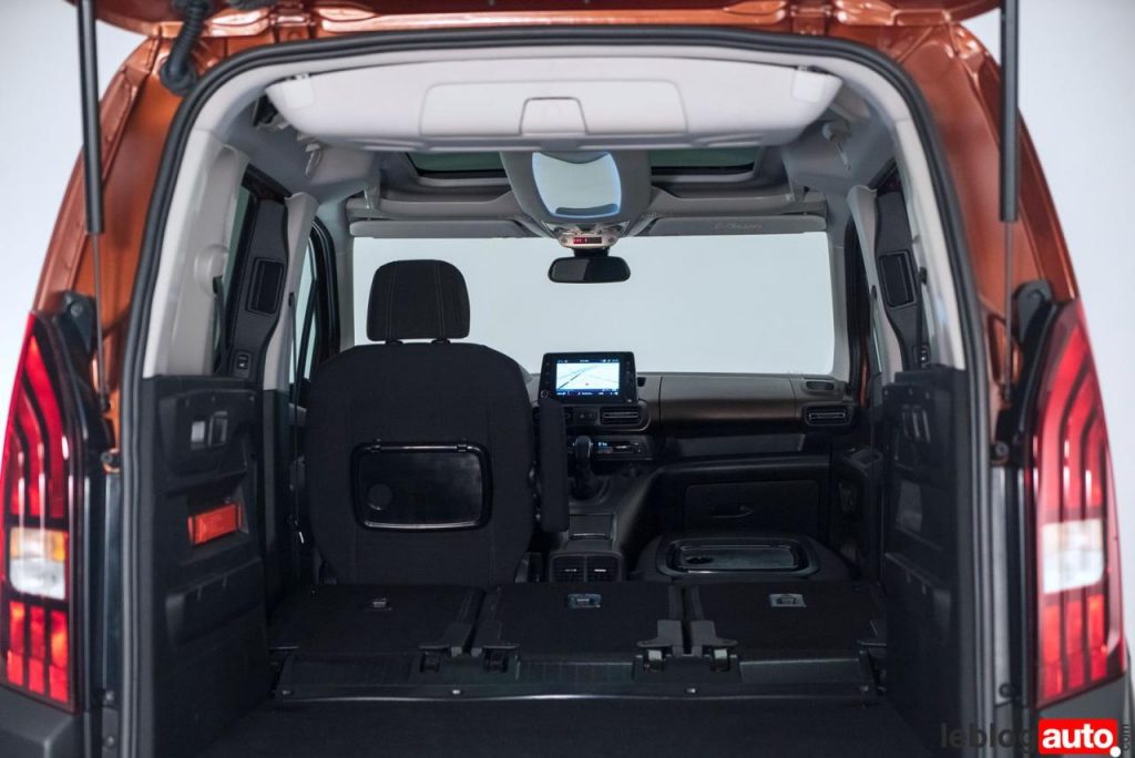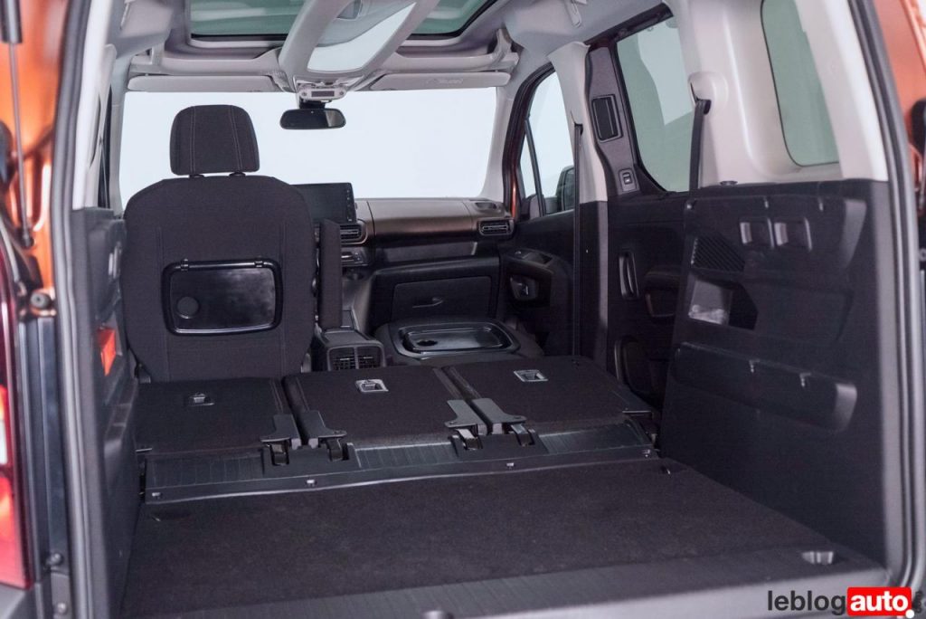 La modularité est désormais l’apanage des ludospace. Ici, le Rifter permet de rabattre les 3 sièges arrières indépendamment et obtenir un planche « presque » plat sans enlever les sièges. Le fauteuil avant se bascule lui aussi pour obtenir une belle longueur de chargement.