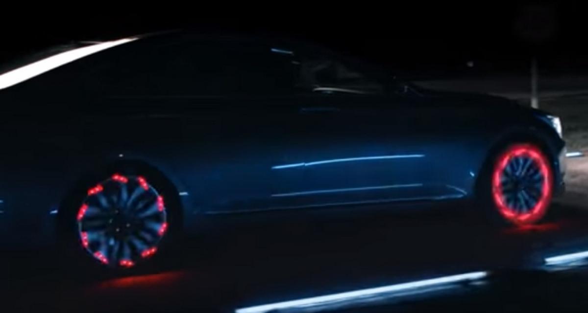 Pour faire la promotion de ce nouveau système 4 roues motrices, Hyundai a eu recours à un prototype de Genesis 3.8L V6 millésime 2015 doté de LED posées sur ses jantes.