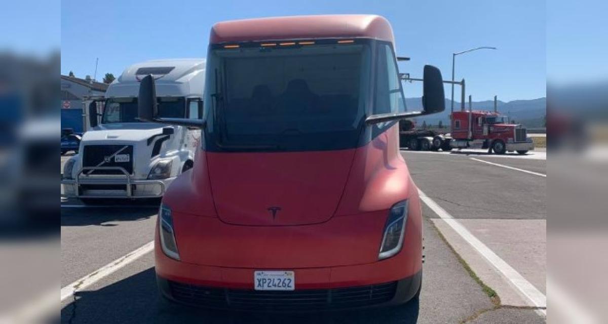 Le camion a été pris en photo (et contrôlé) par la police californienne de la route à Donner Pass, un col routier qui culmine à plus de 2100 m d’altitude. On peut y voir le camion tracteur de Tesla attelé à une semi-remorque qui transporte des plots de béton.