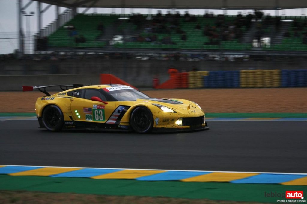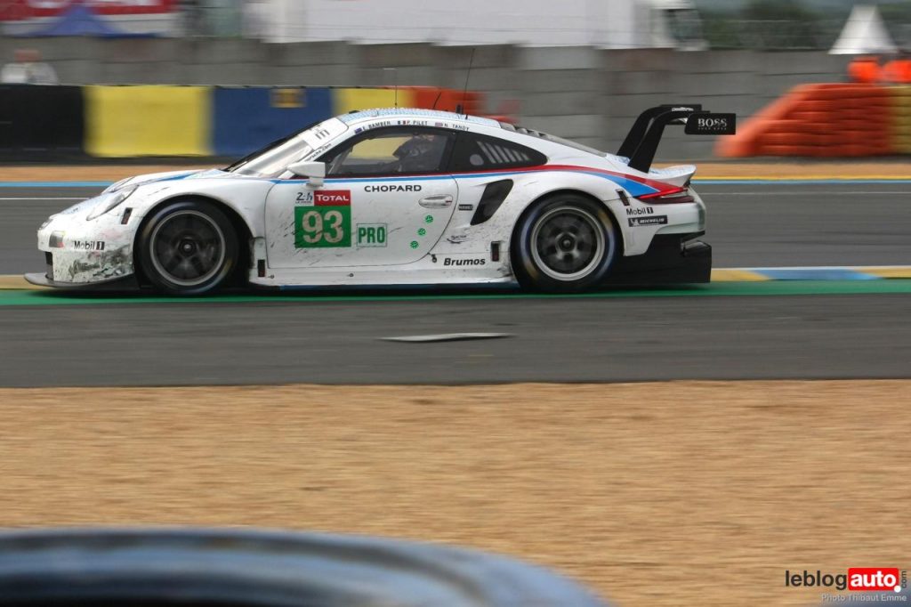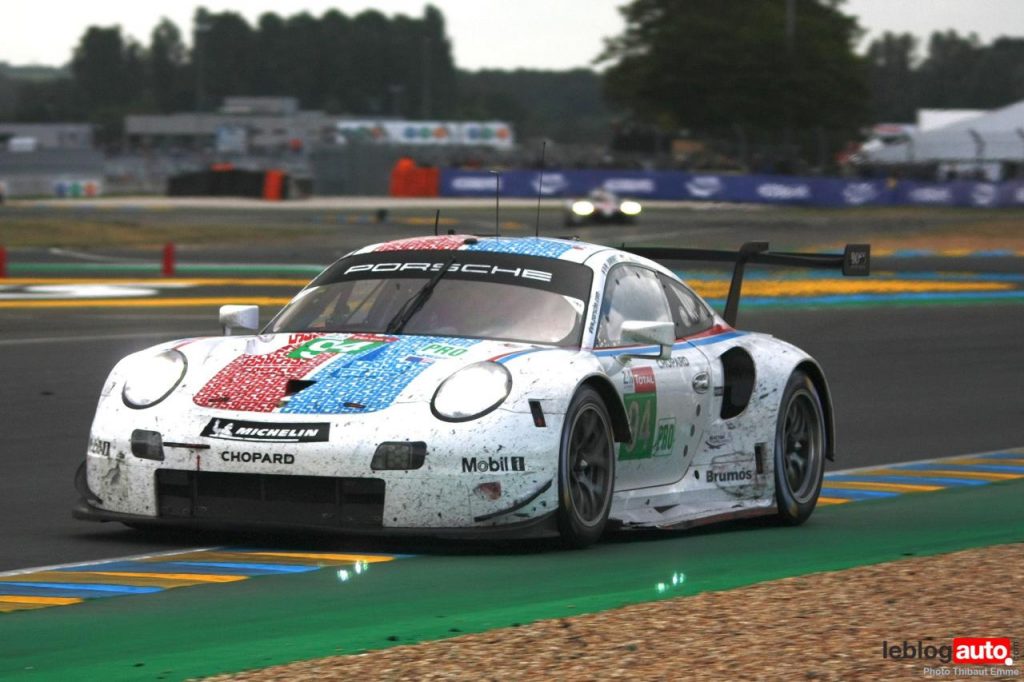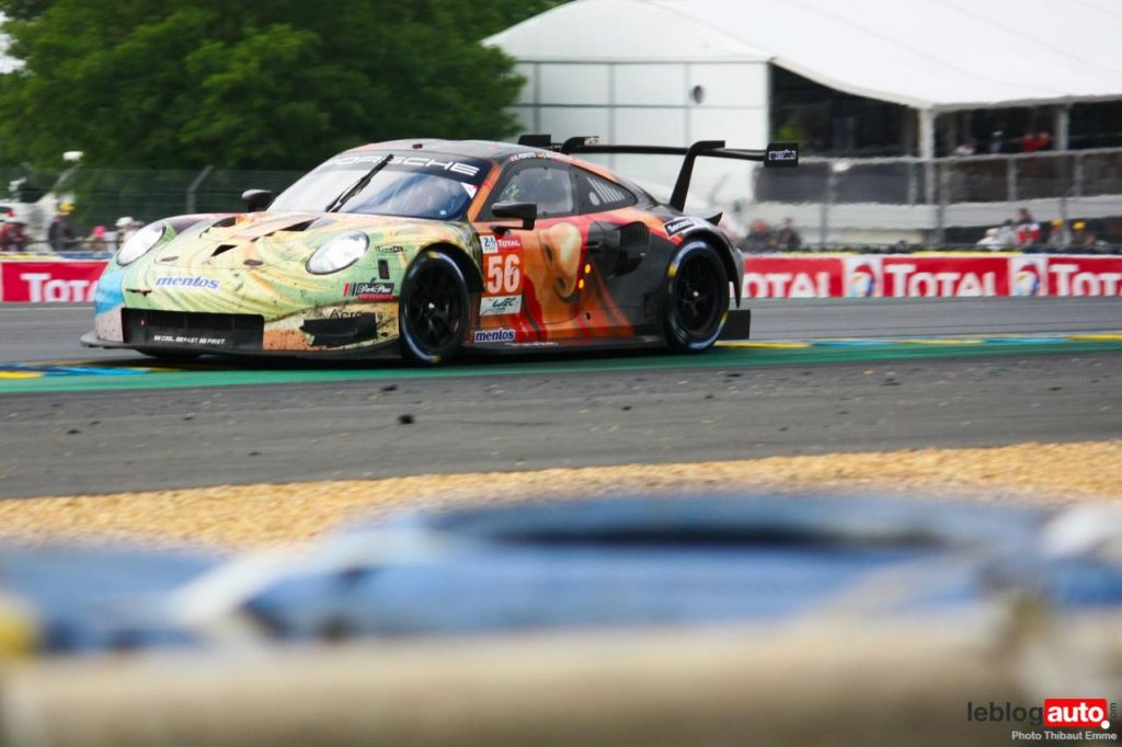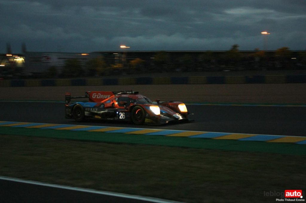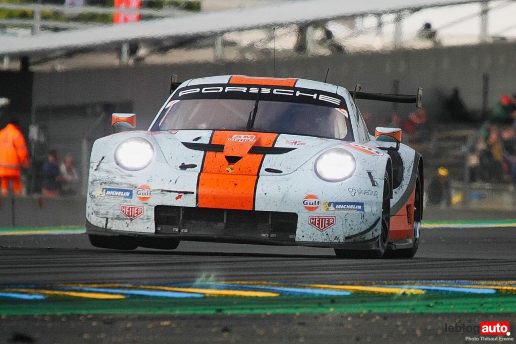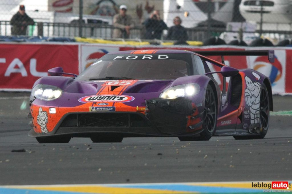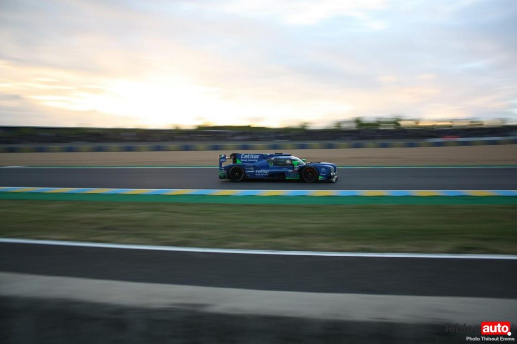 Un petit matin voilé et c’est un levé de soleil sur le Tertre Rouge qui s’envole. On se consolera avec la chicane Dunlop ou les chicanes Ford et du Raccordement. Surtout qu’après des heures de course, les voitures portent les stigmates de la compétitions. Certains ont des morceaux qui manquent, d’autres ont de gros aplats de « gaffer » noir. Mais surtout, toutes ont des traces de gomme, des insectes suicidaires (quelle idée folle de traverser dans la ligne des Hunaudières aussi) et différents liquides balancés par la concurrence.