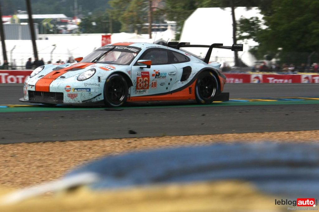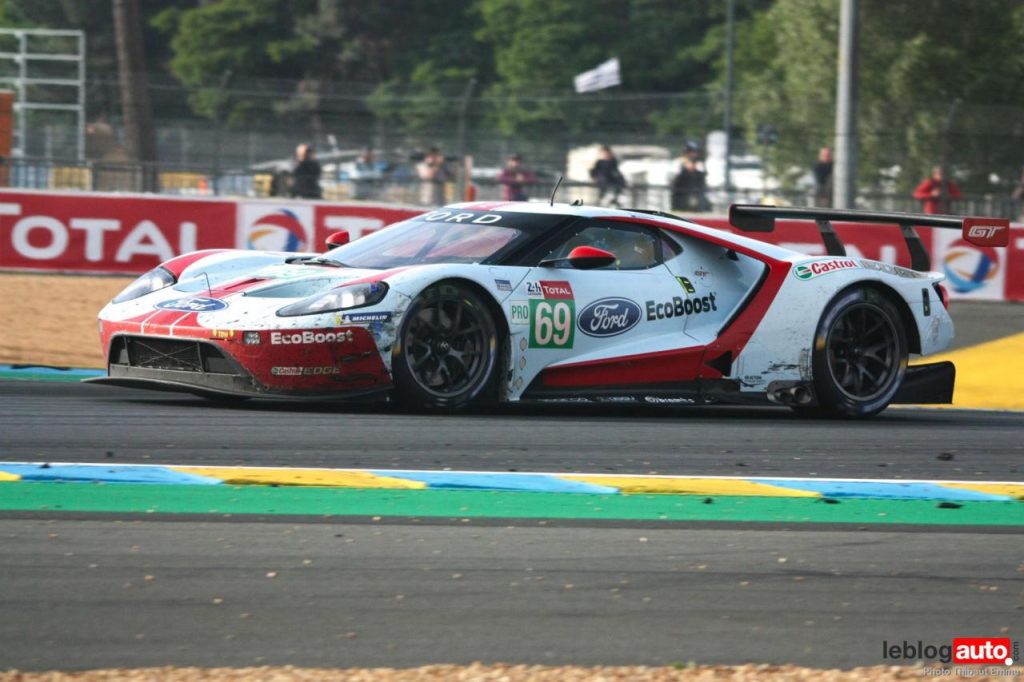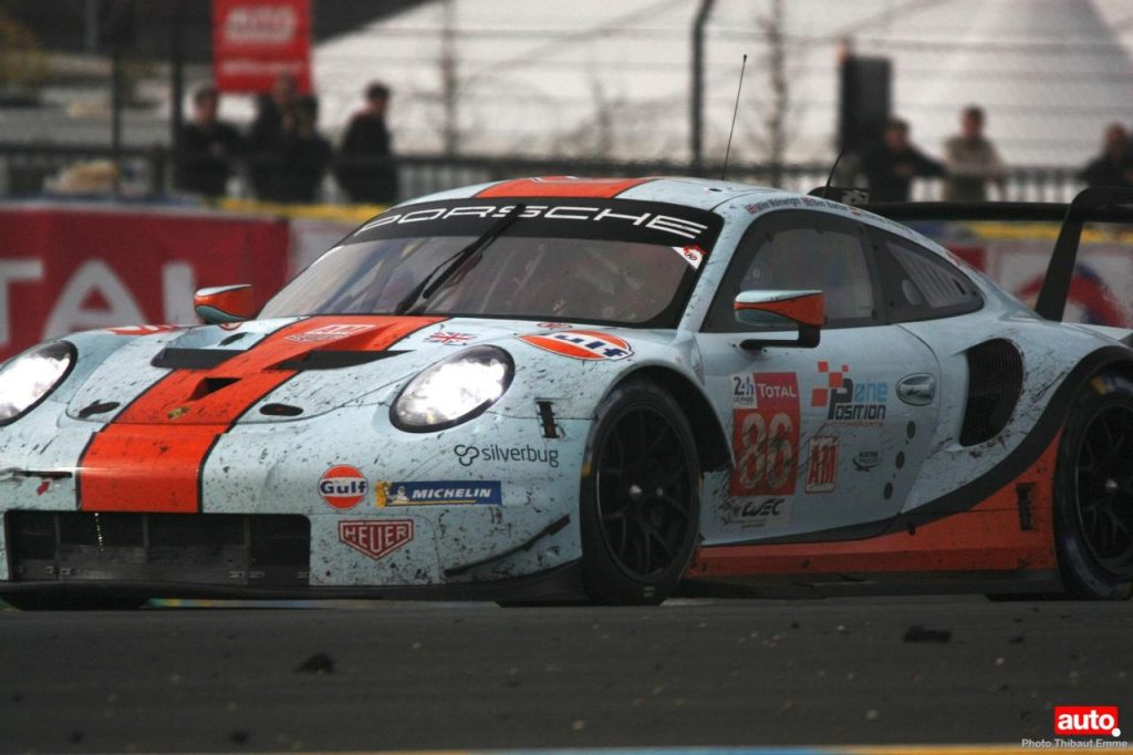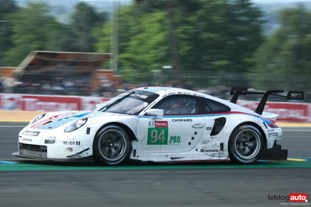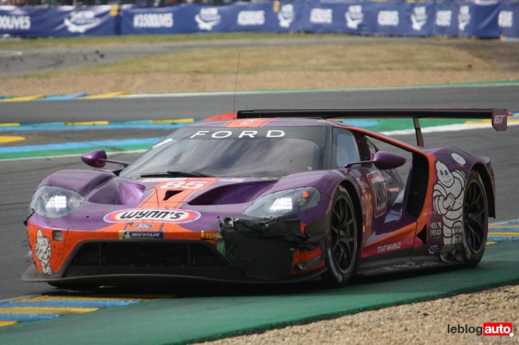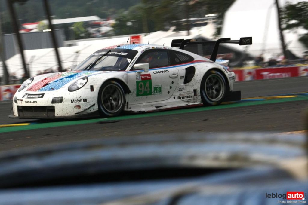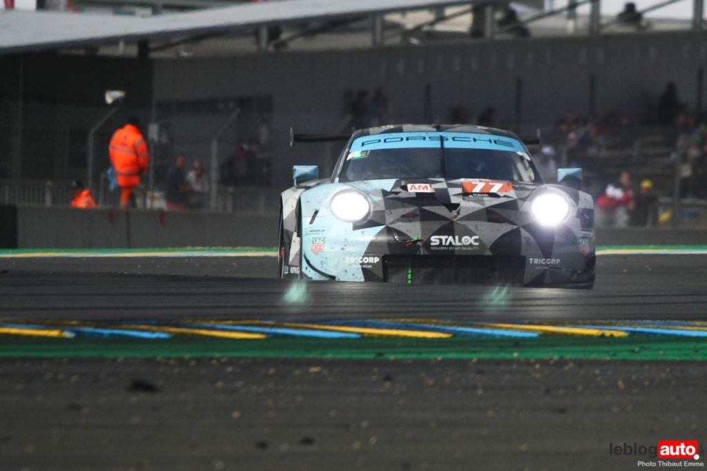 Un petit matin voilé et c’est un levé de soleil sur le Tertre Rouge qui s’envole. On se consolera avec la chicane Dunlop ou les chicanes Ford et du Raccordement. Surtout qu’après des heures de course, les voitures portent les stigmates de la compétitions. Certains ont des morceaux qui manquent, d’autres ont de gros aplats de « gaffer » noir. Mais surtout, toutes ont des traces de gomme, des insectes suicidaires (quelle idée folle de traverser dans la ligne des Hunaudières aussi) et différents liquides balancés par la concurrence.