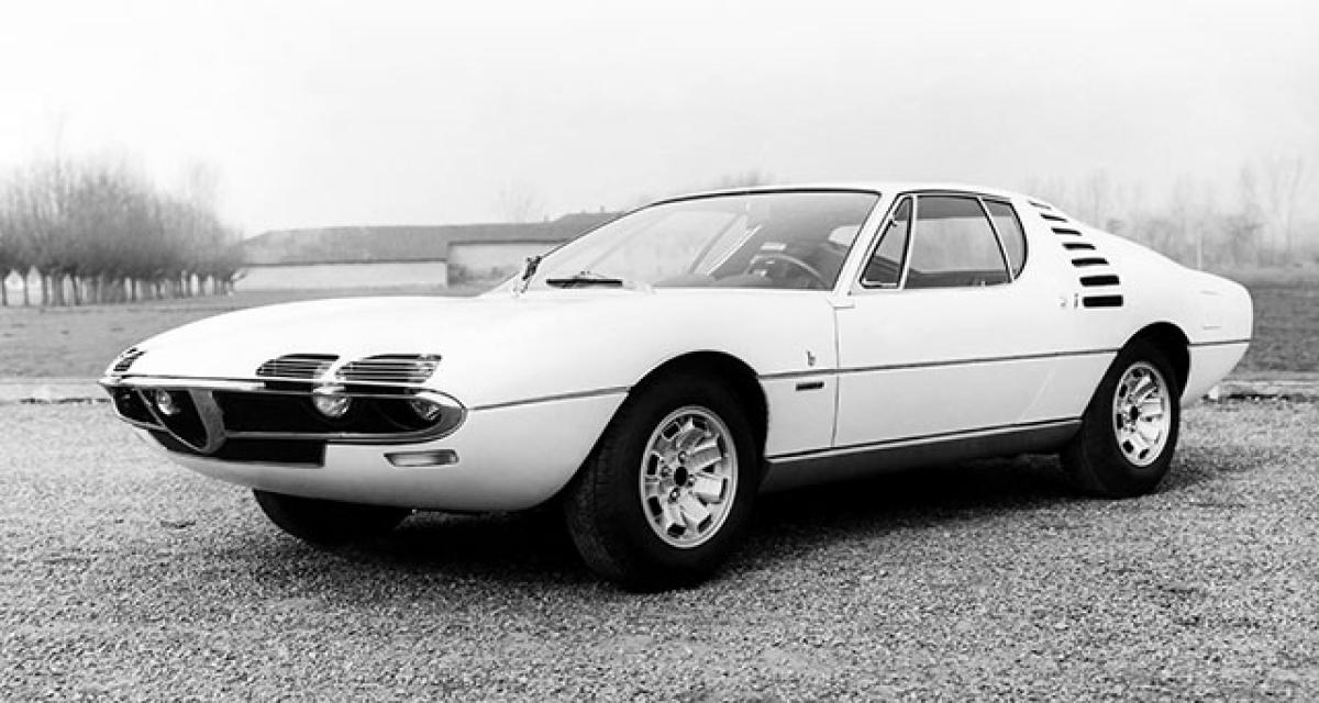 En cette fin des années 60, Alfa Romeo envisage de faire son entrée sur le marché américain. Le prototype créé par Bertone pour l’Exposition Universelle de Montréal doit donner naissance à un modèle capable de porter l’image de la marque.