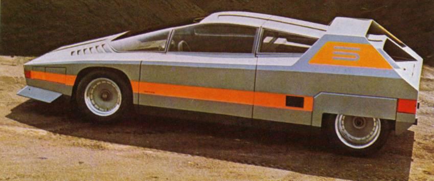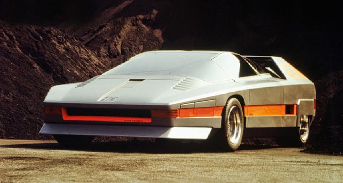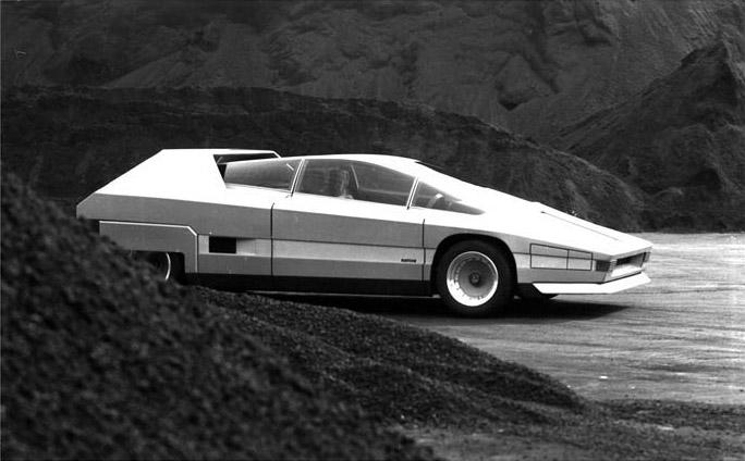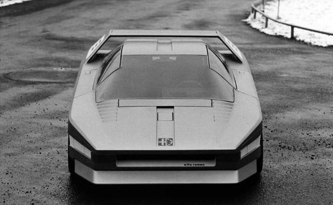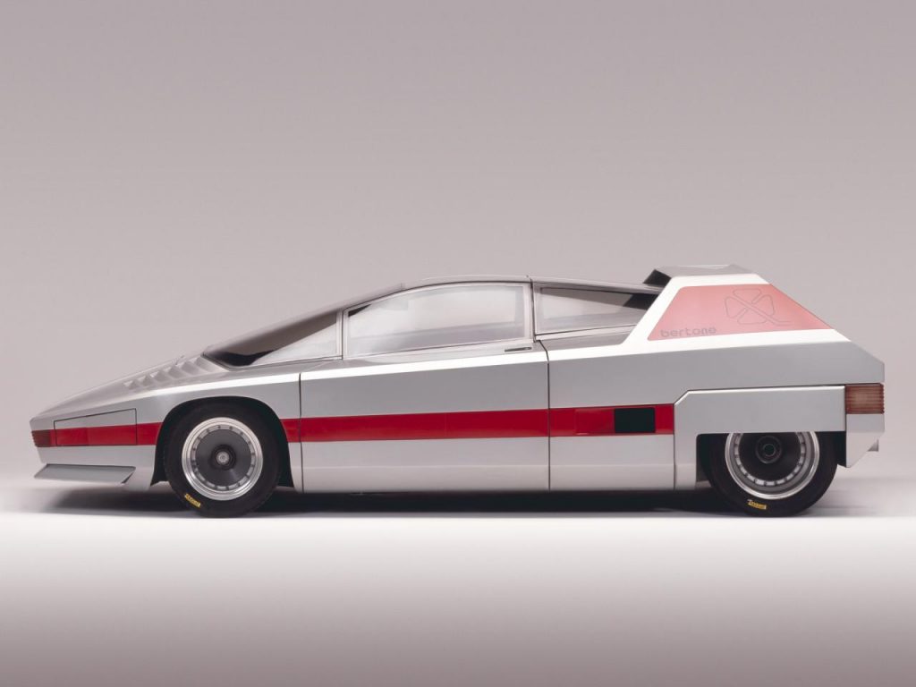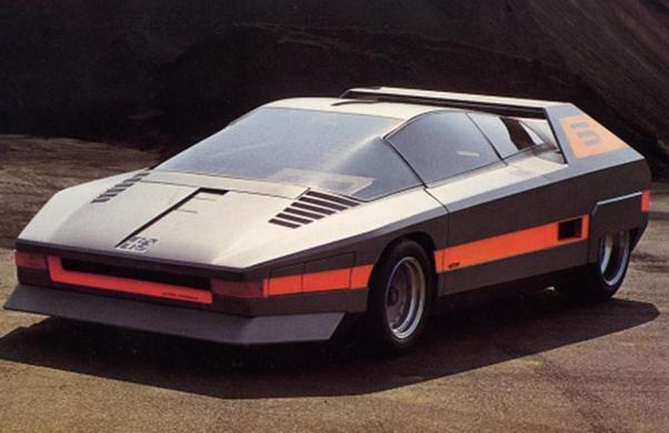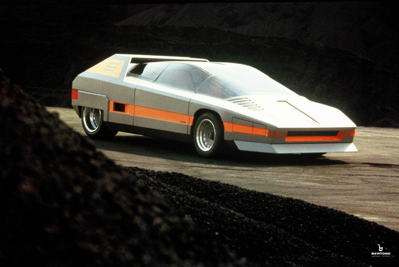 Semblant sortie tout droit d’un film de science-fiction des années 70, elle marque aussi l’essoufflement des thèmes stylistiques du duo Bertone / Gandini qui a fait le succès des Stratos, Carabo ou Countach. Le profil est dominé par l’imposant aileron, dans lequel vient s’encastrer le prolongement de l’habitacle recouvrant le V8 2.0 litres de 230 ch (une autre vision du downsizing…), pour une masse de 870 kg.