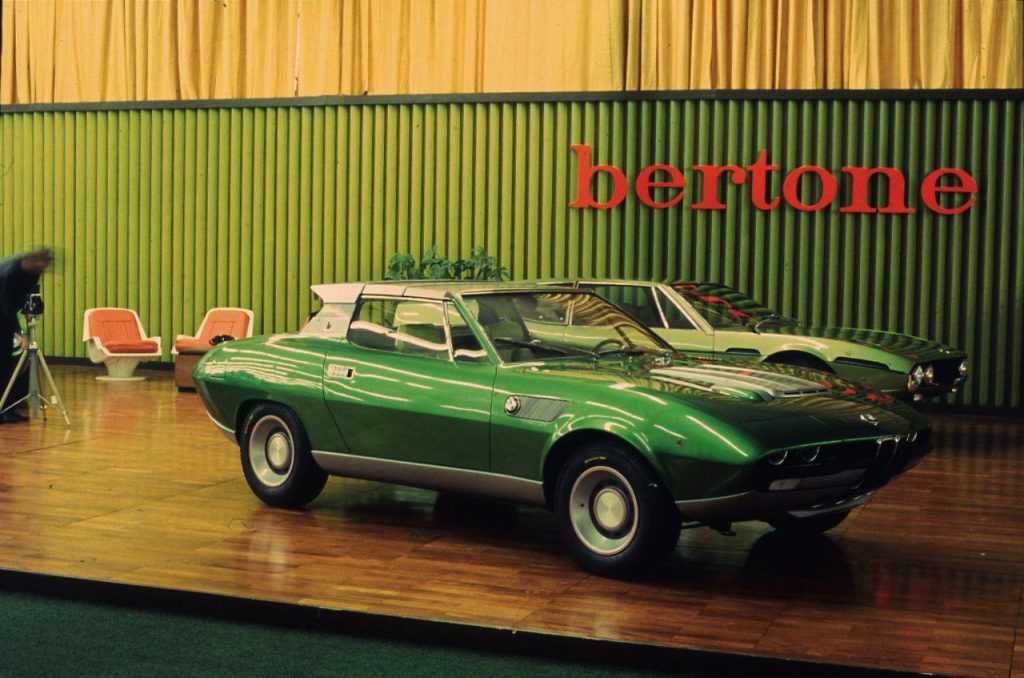 Lorsque BMW lance la nouvelle E9 / 2800 CS en 1968, il se tourne vers Bertone et lui demande de proposer sa propre illustration de ce modèle. Un modèle qui vient en succession de la 3200 CS, créée par le studio italien. Bertone en profite pour caser le principe de toit rétractable de l’ingénieur Enzo Cingolani : deux sections de toit coulissant viennent se ranger dans un caisson au dessus de l’arceau central. D’où son nom mêlant Spider et Coupé.