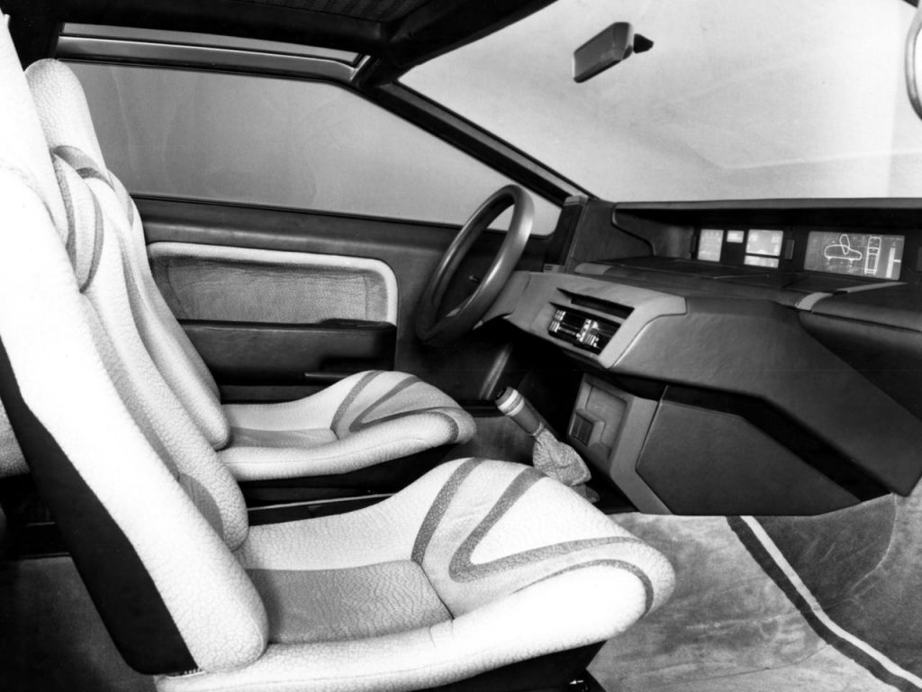 L’ambiance intérieure est assez lumineuse, et l’accès à bord est facilité par les sièges avants pivotants. On retrouve ici aussi un des fils rouges de Bertone. Quatre occupants sont installés à bord, sur des sièges individuels habillés de cuir de kangourou…