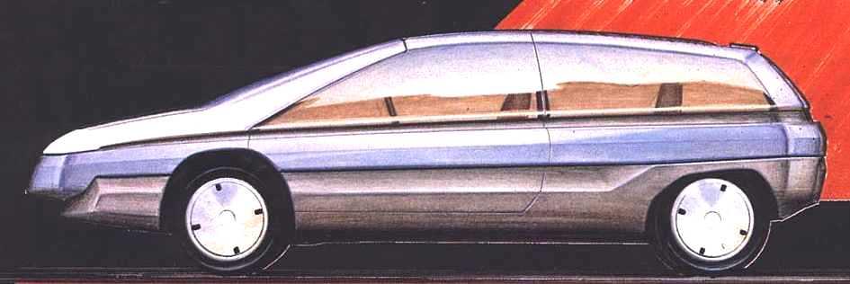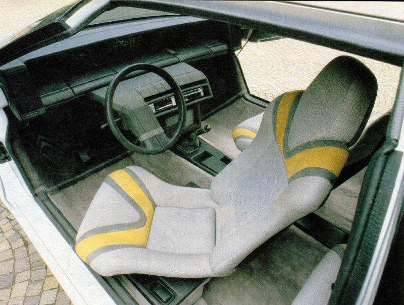 Basée sur la BX 4TC (dont le 2,2l turbo de 200 ch et les 4 roues motrices), elle montre aussi quelques éléments que l’on pourra retrouver sur la XM peu de temps après : le pli des flancs, le décalage de la ligne de caisse au niveau du pied A ou encore l’aspect très fin et étiré des optiques avant. La faible hauteur des vitres latérales est compensée par des vitrages sur les côtés du pavillon.