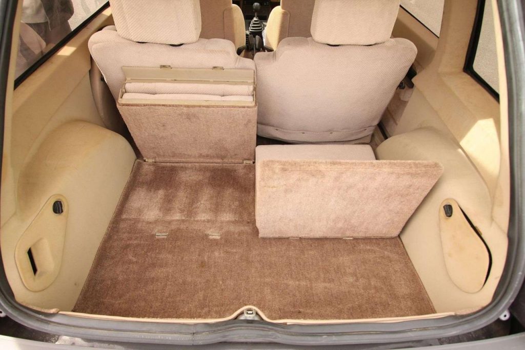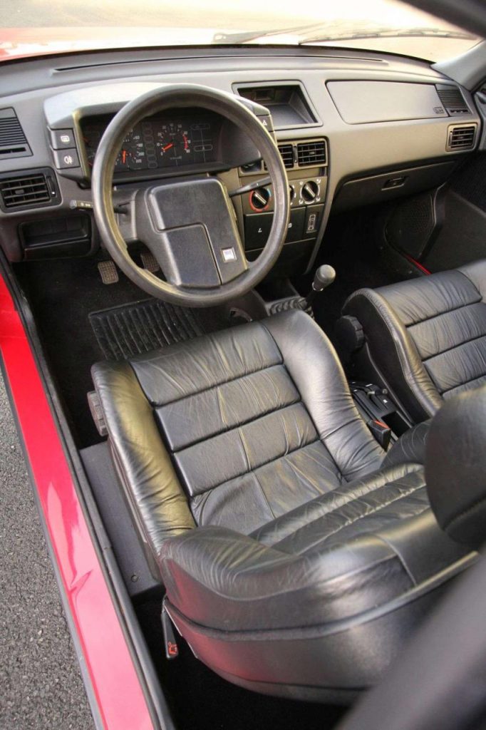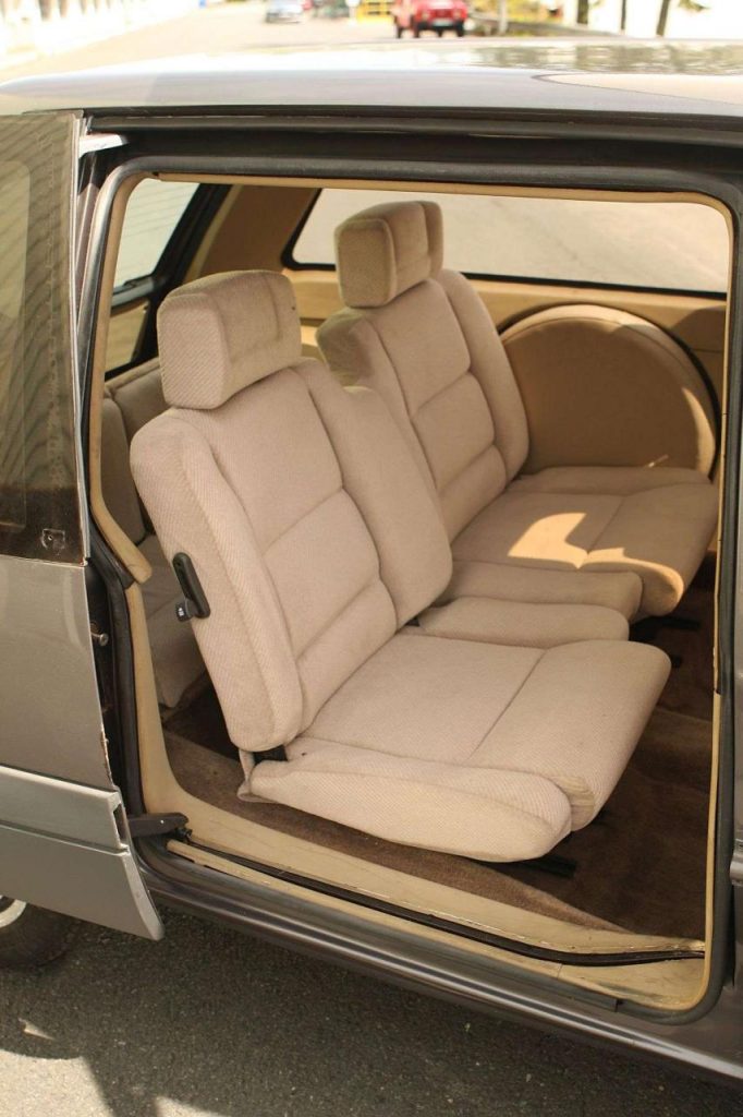 A l’intérieur, Heuliez met à profit le coffre pour y intégrer deux sièges escamotables. Vous noterez que les ceintures sont absentes. Elles ne deviendront obligatoires à l’arrière qu’en 1990 (!) on le rappelle. Heuliez remplace la banquette par deux fauteuils à l’arrière. A noter qu’il est indiqué 2/3 places. La place du milieu semble scabreuse.