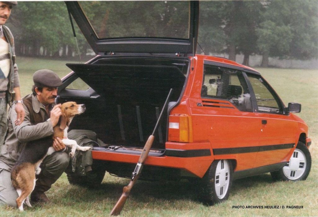 La roue de secours est mise à l’intérieur, côté gauche du passager arrière. Le tout est habillé d’un velours beige « top moumoute ». Ah les années 80. La voiture est présentée au Salon de Paris de 1985. Heuliez la voit déjà en Taxi, ou en véhicule de grande remise (!). Ou quand la puce des villes joue les limousines. Hélas, cela restera un concept-car. Le prototype (feux arrières factices, pas de carte grise, etc.) fut vendu 5 957 € en 2012.