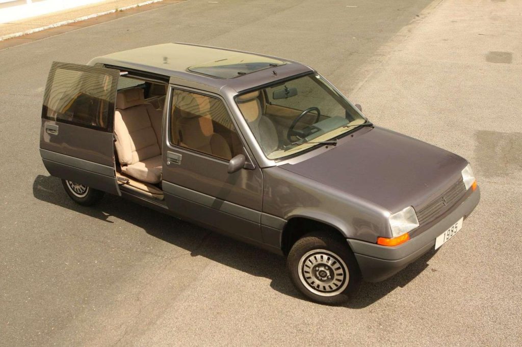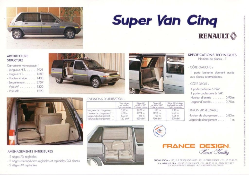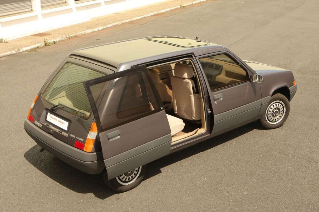 Partant d’une base de Super Cinq, chez Heuliez on découpe la citadine et on rallonge un peu l’empattement pour avoir plus de place pour les passagers. En revanche, Heuliez ne peut pas se contenter de mettre deux « vulgaires » portières arrières. La société fait donc plancher ses ingénieurs sur une solution innovante et qui apporterait un plus. L’objectif est évidemment de se voir confier la production de la voiture par la régie Renault, même si cette dernière taille massivement dans les dépense sous l’impulsion de Georges Besse appelé pour sauver le losange.