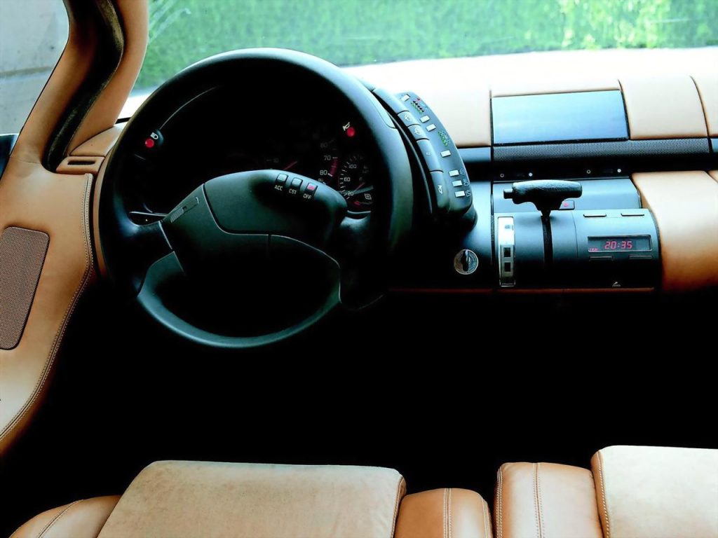 Un moteur arrière donc, et toujours un 5 cylindres Audi développant ici 200 ch. On retrouve les mêmes contrôles techniques sur les flancs que sur les coupés, mais l’empattement est allongé de 300 mm pour proposer une habitabilité digne de ce nom.