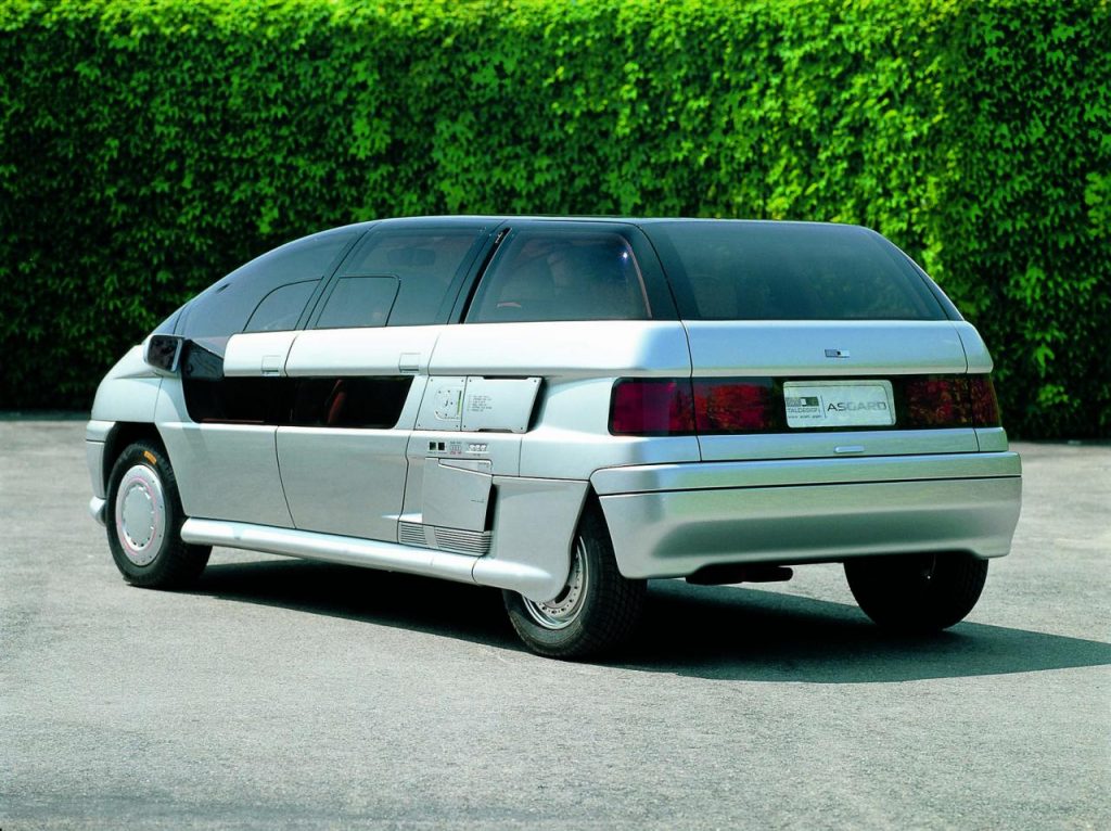Aztec, Aspid et Asgard, trois concepts donc pour l’anniversaire d’ITalDeisgn au salon de Turin 1988. Trois concepts partageant la même architecture technique, mais pas la même philosophie. Car aux côtés des deux coupés que nous avons revisité ces dernières semaines, l’Asgard était un nouveau concept de monospace. Donc héritier des études Alfa Romeo New York Taxi, Lancia Megagamma, Capsula, Together…
