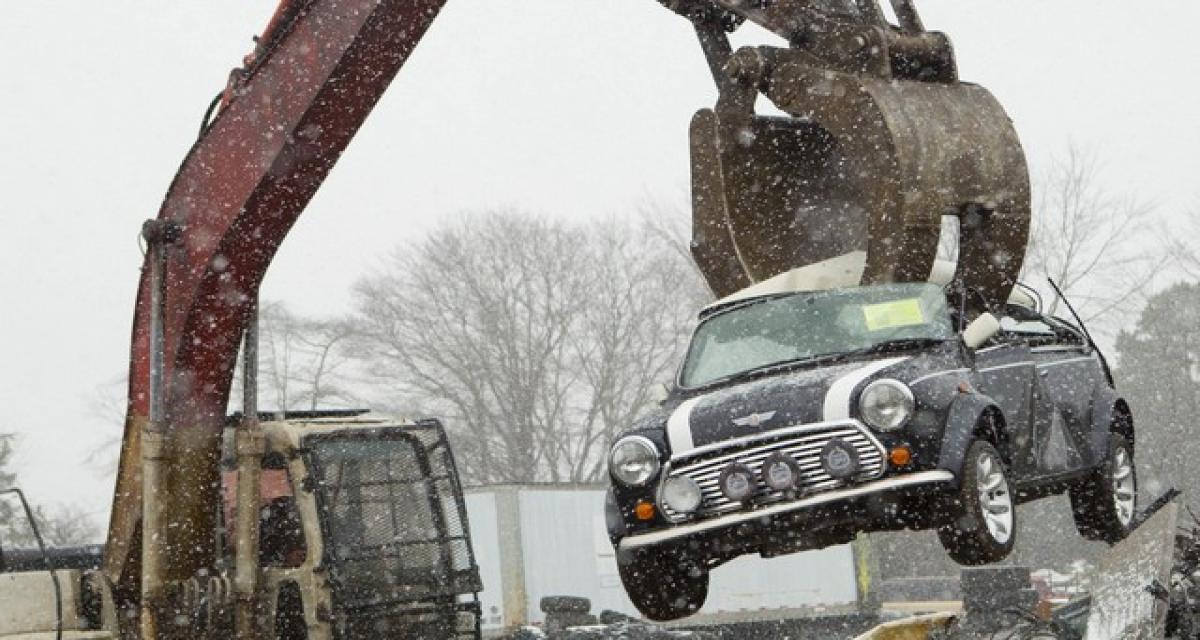 Les douanes américaines ne rigolent pas avec les sans-papiers ! Cette Mini Cooper a été reconnue coupable de se balader avec de faux-papiers et d’enfreindre la réglementation sur les importations. Sentence : destruction.