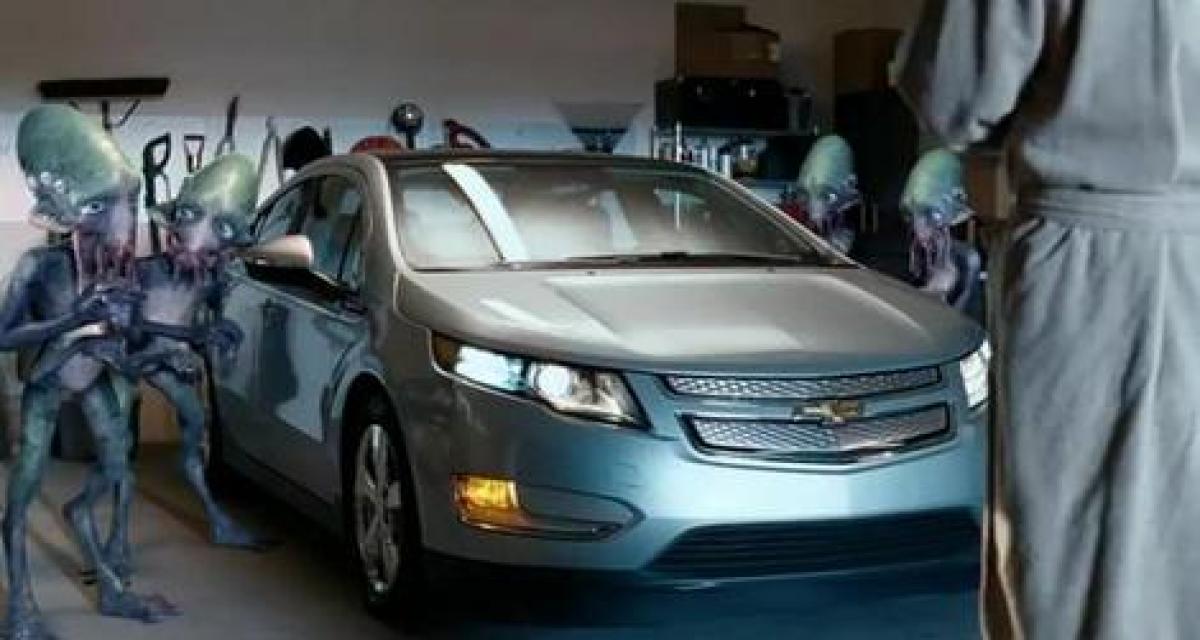 Chez Chevrolet, nous avons décidé de sortir trois spots du lot, trois spots assez délirants et comiques. Pour débuter, la Volt est visiblement appréciée par les aliens (à défaut d’être un grand succès auprès des terriens) aussi bien pour ses technologiques qu’en général…