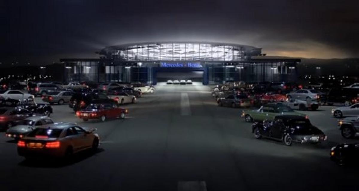 On y voit quasiment tout ! Une Mercedes Pagode dans une grange au début, suivie de la mythique 300 SL dans un musée puis la version roadster dans un champ et même la première voiture à moteur de 1886 sous brevet Benz. D’autres modèles historiques et futuristes font bien sûr leur apparition tout en partageant un petit bout de route avec les modèles plus récents comme la dernière SL, le petit GLK, le grand GL en passant même par la classe S de P. Diddy et aussi une Classe E version crash test qui s’anime par magie. Par magie oui, comme tous ces modèles qui démarrent et ressentent l’envie de s’enfuir pour rejoindre un hangar où se trouvent les quatre derniers modèles étoilés ; la SLS roadster, la SLK 3ème génération, la CL et la Classe C Coupé version AMG. Petite remarque, ne quittez pas la vidéo après le court générique de fin puisqu’on y voit le rappeur américain plus élégant que jamais…