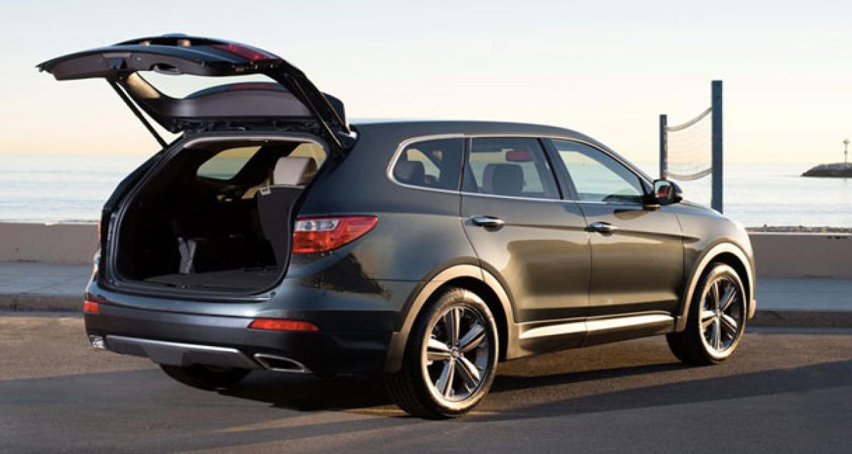 Plus d’habitabilité pour les passagers du rang 2 et du rang 3, mais aussi pour le coffre. 1,15 m3 de chargement en configuration 4/5 places (au pavillon), et 382 litres derrière les sièges du troisième rang. Accessible via un hayon motorisé. Un volume habitable qui s’exprime par un style volontairement moins dynamique, avec un dessin plus linéaire de la partie arrière Le Santa Fe en version longue reçoit aussi une calandre spécifique.