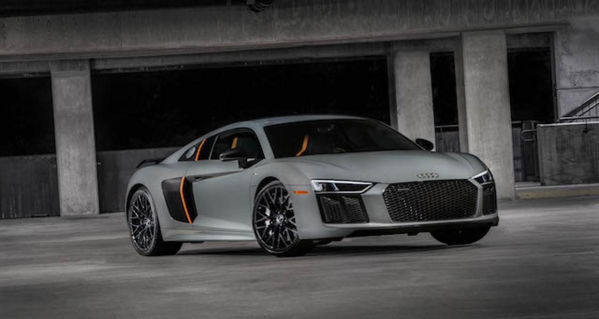 Pour rester exclusive, cette R8 reçoit une peinture « Quantum Gray » rehaussée de touches de couleur « Solar Orange », des accessoires en fibre de carbone et des jantes de 20 pouces.