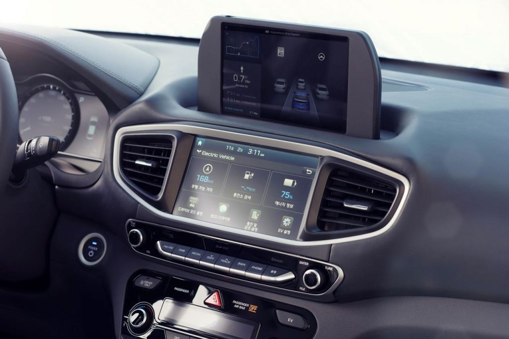 En matière de capteurs justement, cette Ioniq intègre à l’arrière deux radars, et à l’avant 3 caméras, implantées au niveau du rétroviseur central, deux radars (moyenne et longue portée, 60 et 200 mètres), et 3 lidars. Ces derniers représentent le plus gros travail d’intégration, dans la partie basse du bouclier avant. Un progrès par rapport aux multiples prototypes souvent bardés de capteurs sur le toit. Hyundai rend ainsi la voiture autonome visuellement plus appropriable par le public.