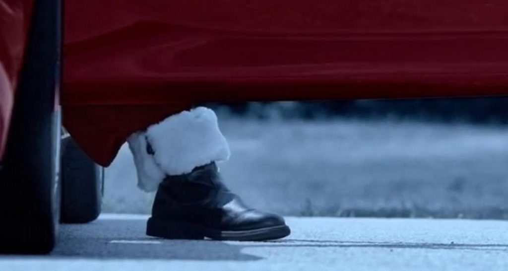 Et comme de coutume dans ce cas, on retrouve bien entendu le grand barbu vêtu de rouge et de blanc qui troque son traîneau zéro émission pour quelque chose qui sent la gomme et en brûle à volonté.